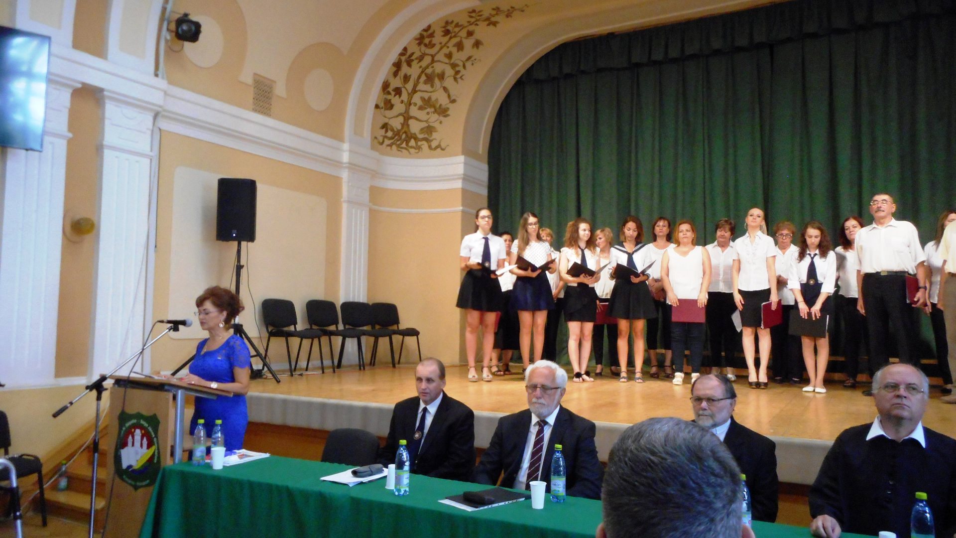 Maga az ünnepség 10.00 órakor kezdődött a gimnázium aulájában, ahol elsőként Farkasné dr. Bartakovics Adrianna gimnáziumi tanár köszöntötte az egybegyűltek.