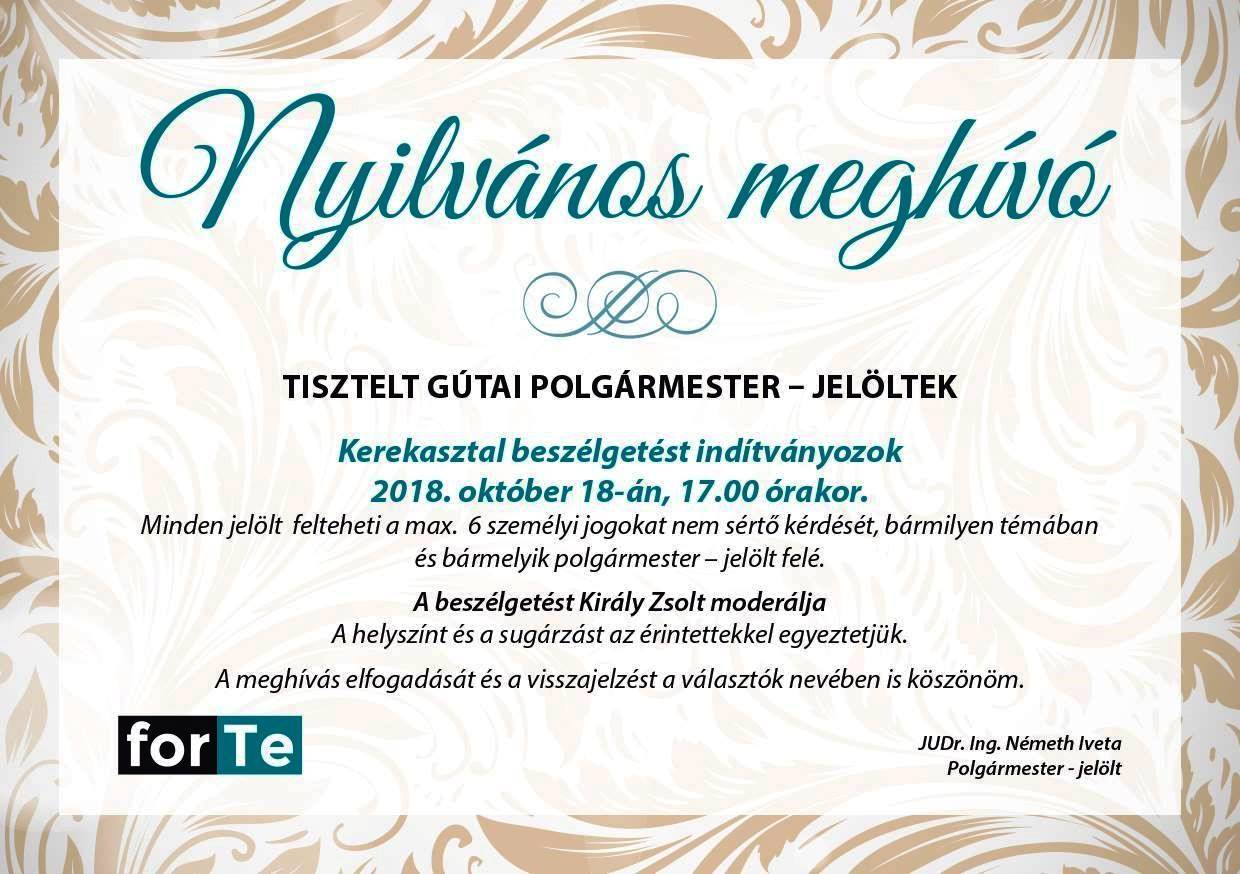 Amennyiben a jelöltek ráállnak, a kerekasztal beszélgetésre október 18-án, 17.00 órakor kerül sor Gútán.