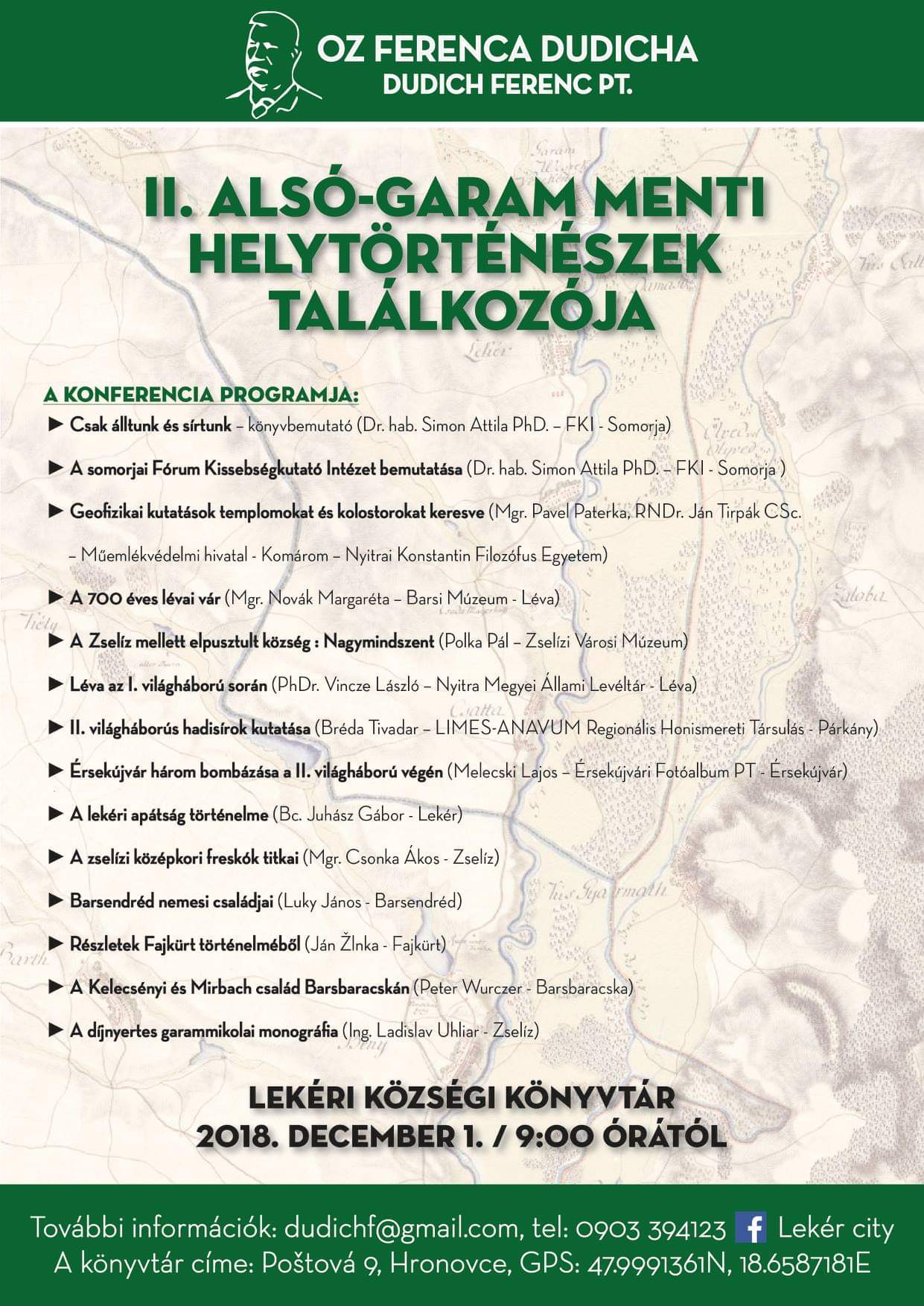 December 1-én szervezik meg a II. Alsó-Garam menti Helytörténészek Találkozóját a lévai járásbeli Lekéren. A konferencia Simon Attila Csak álltunk és sírtunk c. kötetének bemutatásával veszi kezdetét.