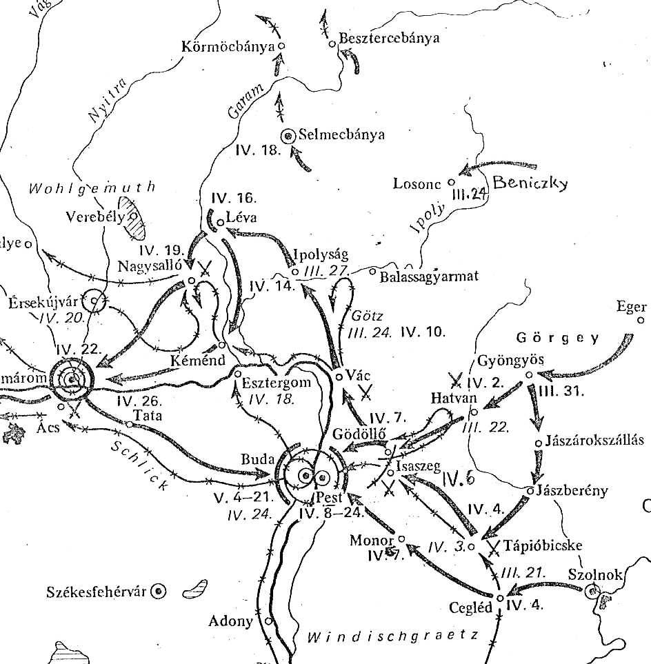 „Fél egy volt délután. A városban csend; a katonaság ebédelt s váratott a császári biztos, ki az előbbi események fölött nyomozandó vala. Egyszerre véletlenül két magyar huszár jelenik meg a piaczon, s ezek után a Rimaszombatból vezető uton 31 vágtat be, végig futják a várost, pisztolyt sütnek, s kardjaikkal hadonáznak, s iszonyu lármával töltik be az utczákat … a császáriak részéről megfuvatott a riadó; de már ekkor minden késő vala. Egy huszárkáplár, Döbrei János (Debrődi – P.J.) , már másodszor jelent meg a piaczon, midőn a császári gyalogság által elfoglalt vendégfogadó ablakából lövés történt, mely öt földre teríté. A zavar és rendetlenség közepette a császári parancsnok lóra kapott, és embereit rendezni akará. – Végre a dzsidások egy része összeszedte magát s támadást készült intézni a minden felé rohanó huszárok ellen; midőn ezek vezére, egy hadnagy, cselhez folyamodván, erős hangon ily vezényletet kiált németül: Huszárok! első osztály rohamra, második osztály ágyúfödözetre! Indúlj! … a császári katonaság erre megállapodott, s mivel a huszárokon legalább hatféle egyenruha volt, valószínűnek látszék előttök, mikép azok nagy számmal lehetnek. – S hozzá véve a huszárok támadási merényét, s az egész várost betölteni látszó robajokat, nem lehet csodálni, hogy amazok inkább védelmi, mint támadási helyzetbe tevék magukat.