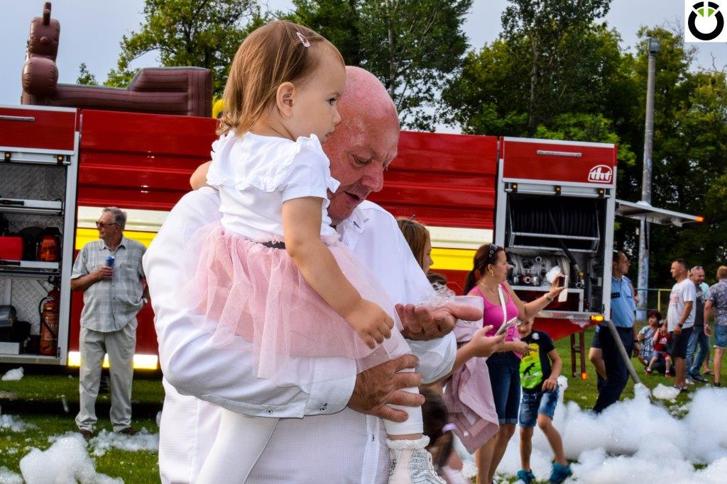 Miközben a felnőttek finomságokat fogyasztottak, beszélgettek, a gyermekek izgatottan várták, hogy a tűzoltók gépezetének hangja felzúgjon és kezdődjön a habparty. Voltak, akik ruhájukat fürdőruhára váltva várakoztak.