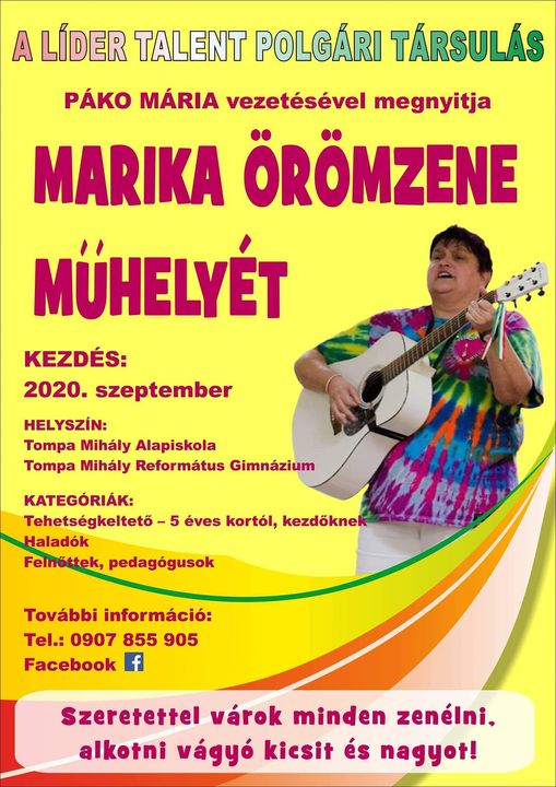 Szeptember hónap – Rimaszombatban a TM Alapiskolában és a TM Református Gimnáziumban a Lider Talent Polgári Társulás és Páko Marika megnyitja Marika Örömzene Műhelyét.