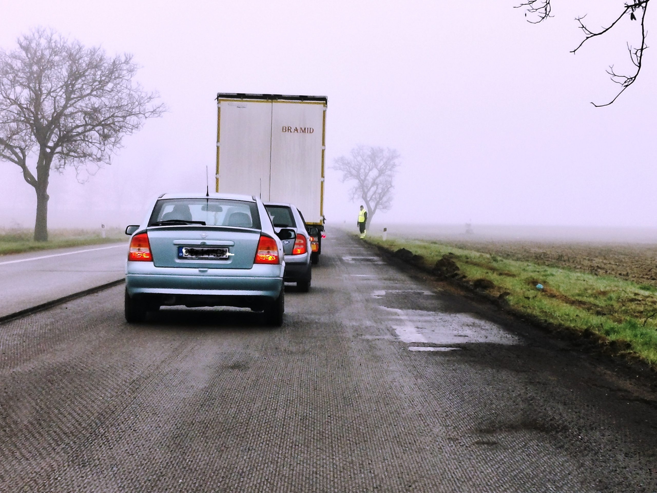 Mivel az út fel van szedve, ezért nem ajánlatos rajta nagy sebességgel hajtani.