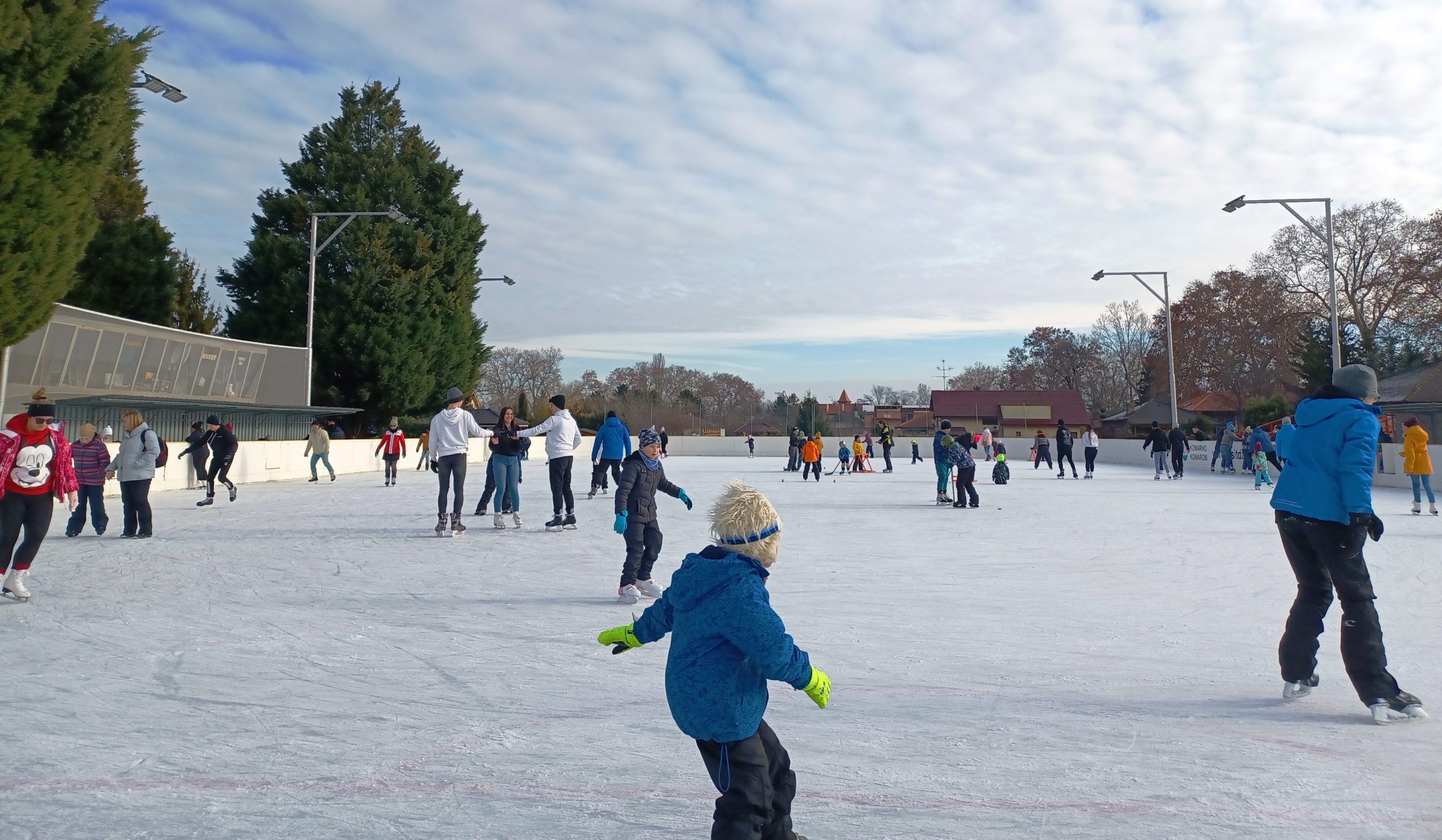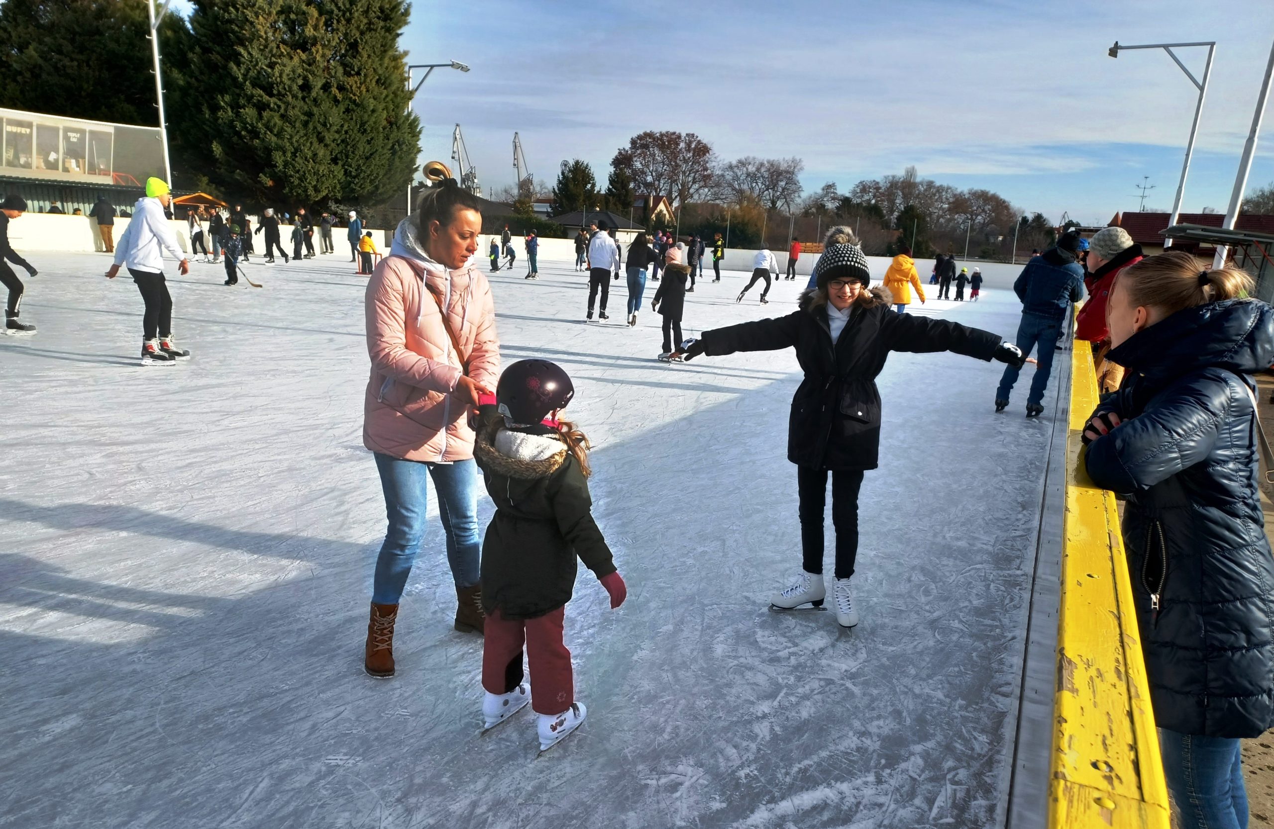 Január első igazi hétvégéjén nagyon szép téli idő köszöntött ránk, így rengetegen éltek a szabadtéri program lehetőségével. A műjégpályán szinte minden korosztály képviseltette magát, kicsik és nagyok, fiatalok és idősek együtt élvezték a mozgás frissítő hatását. Öröm volt látni, amint a fiatal apukák, anyukák apró csemetéiket biztatva siklottak a jégen.