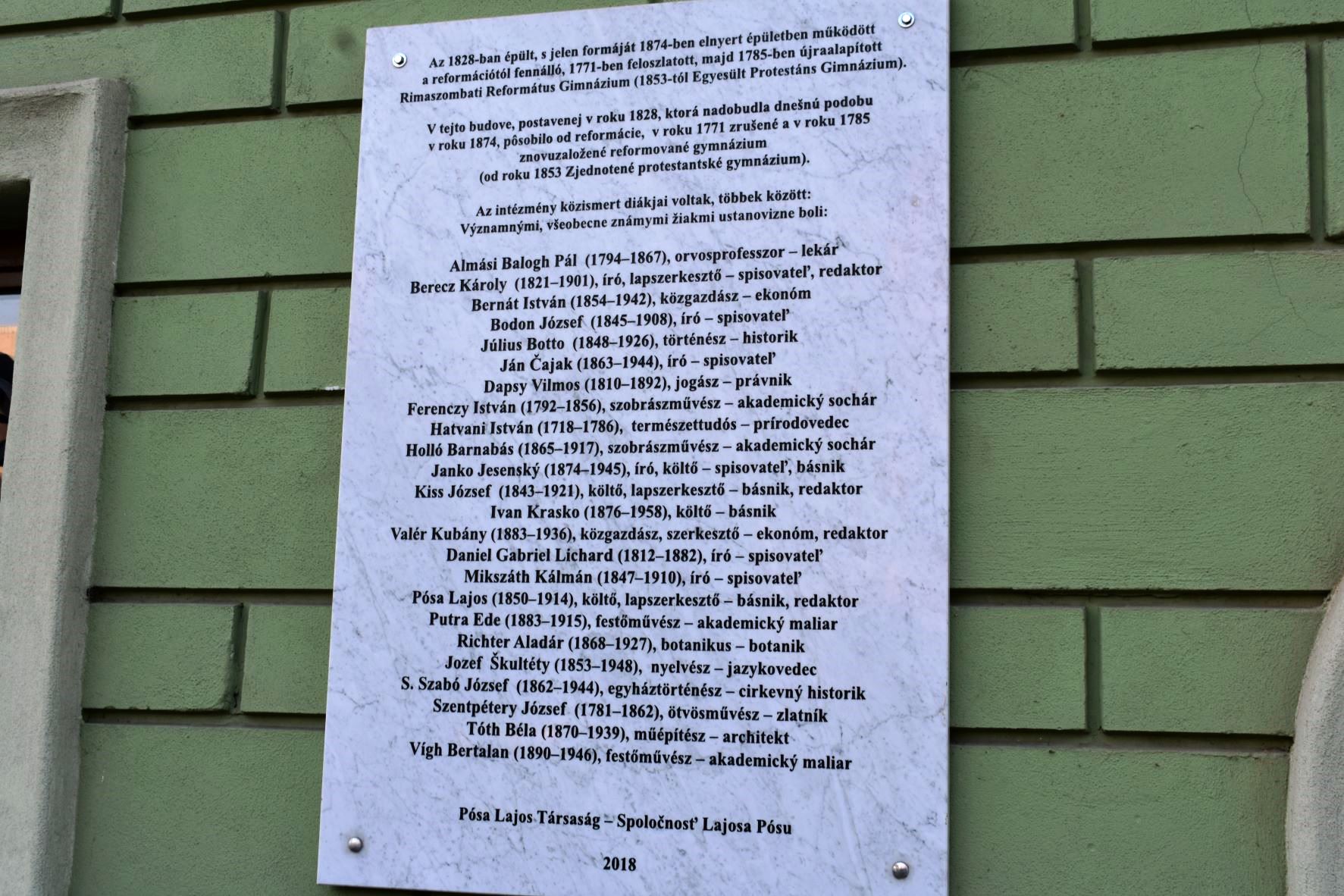 Mikszáth Kálmán rimaszombati kötődéséről emléktábla ad hírt, amely a régi Egyesült Protestáns Gimnázium (Lyceum) falát díszíti. A város magyarsága minden évben az emléktábla koszorúzásával emlékezik a nagy íróra, születésének évfordulóján, így történt ez most is. A pandémia ellenére most a koszorúzást a Református Gimnázium és a Pósa Lajos Társaság szervezte meg.