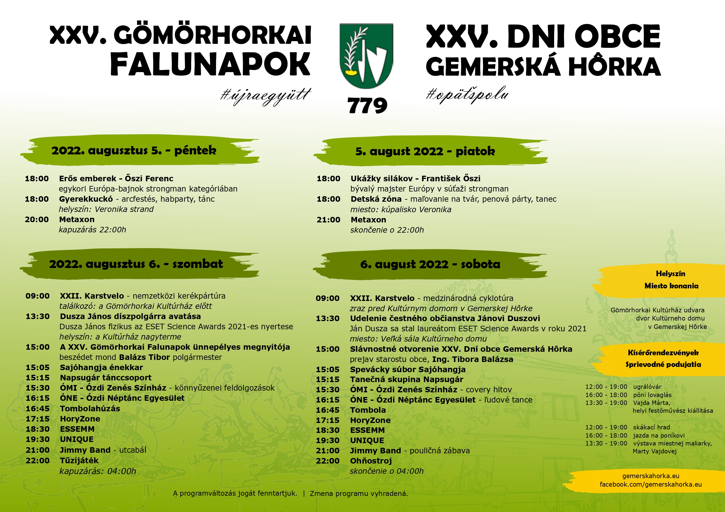 Augusztus 6-án (szombaton) Gömörhorkán falunap lesz sok programmal.