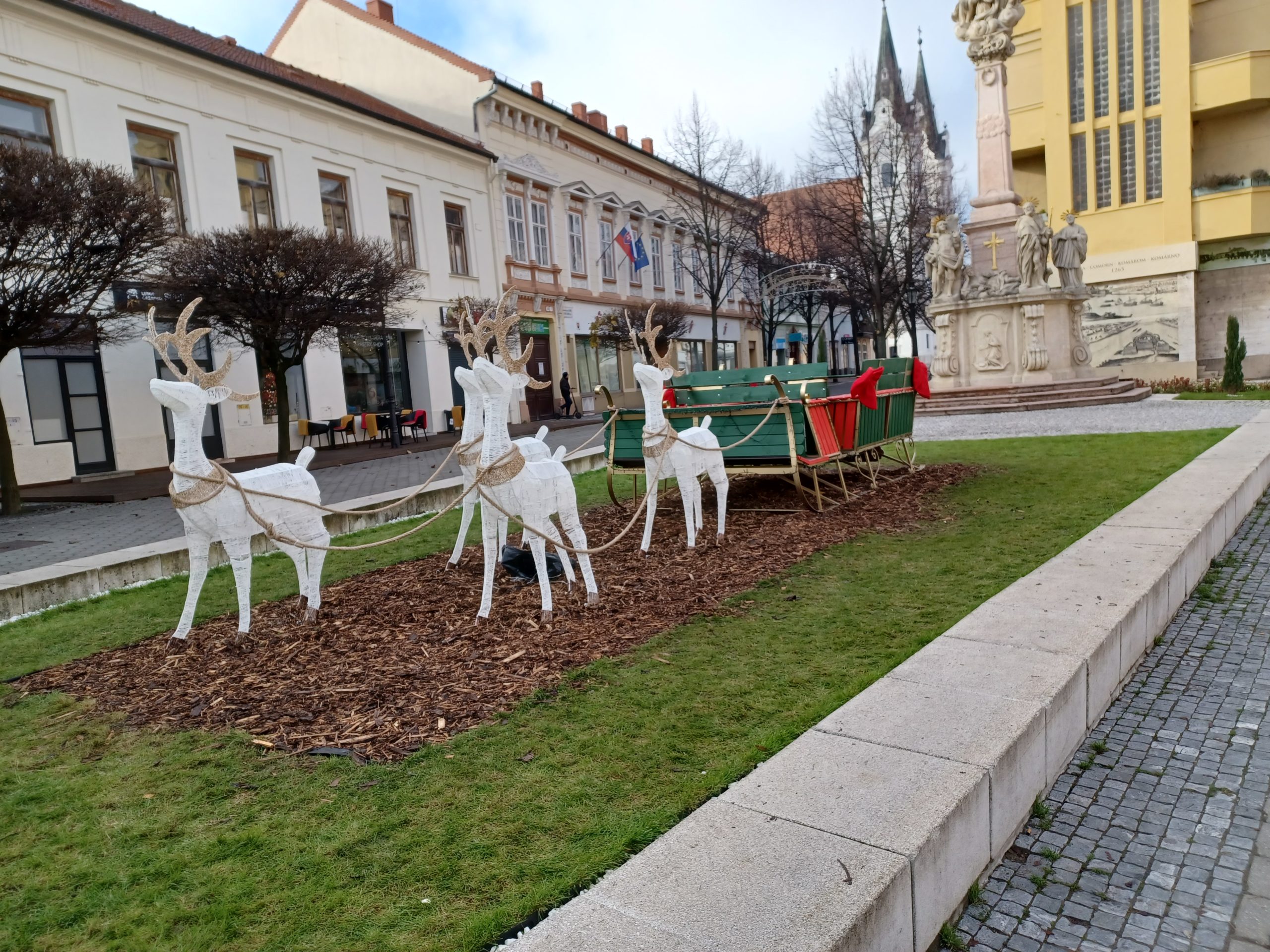 Az elmúlt hét folyamán a fenyőfára rákerültek a karácsonyi díszek is, és a belváros több pontján megjelentek az ünnepvárás egyéb vizuális elemei. A megszokott karácsonyi esztétikumok mellett új hangulatfokozó díszekkel is találkozhatunk, ilyen például a mesés ezüstös rénszarvasfogat a Szentháromság-szobor közelében, melynek hintajára fölkapaszkodhatnak kicsik és nagyok. Az új díszítőelemek közé tartozik az aranykapu is, ami tulajdonképpen egy állókoszorú, és kiváló lehetőséget teremt karácsonyi hangulatú fotók készítésére.
