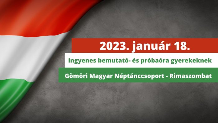 Szeretnéd, ha gyermeked magyar néptáncot tanulna? Gyere el 2023. január 18-án szerdán 17:00 órakor ingyenes bemutató- és próbaóránkra a rimaszombati Tompa Mihály Református Gimnázium tornatermébe.