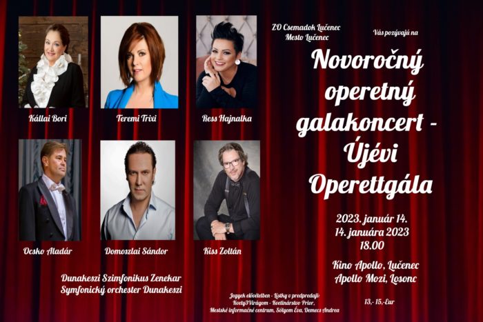Január 14-én (szombaton) 18:00 órától Losoncon, az Apolló moziban Újévi operettgála lesz.