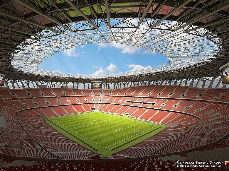 Skardelli György hangsúlyozta, hogy a háromszintes lelátó mind a 65 ezer ülőhelye fedett lesz az új stadionban, amely mindenben megfelel majd a 2020-as labdarúgó Európa-bajnokságra vonatkozó előírásoknak.