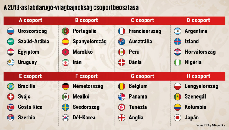 A 2018-as oroszországi FIFA labdarúgó-világbajnokság hivatalos csoportbeosztása: