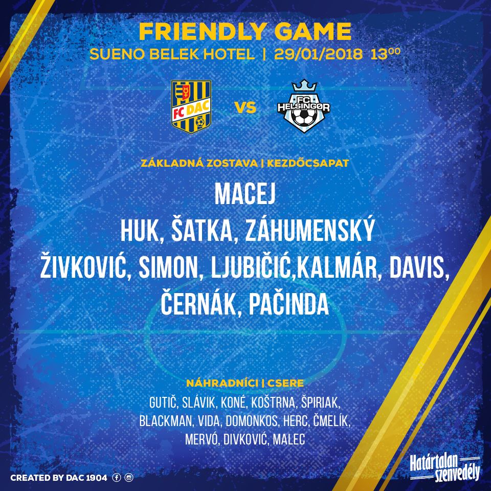 Hétfőn, szlovákiai idő szerint 13 órától játszott felkészülési mérkőzést a DAC és a dán élvonalbeli FC Helsingør.