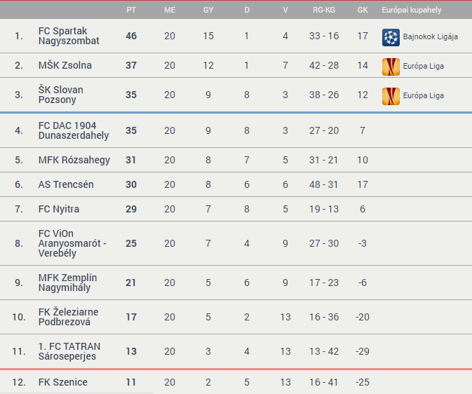 Ahogy arról már korábban beszámoltunk olvasóinknak, az alapszakasz befejezése után a Szlovák Labdarúgó-szövetség versenykiírása szerint alakul ki a csapatok sorrendje. Ebből a dokumentumból kiderül, hogy pontegyenlőség esetén az egymás elleni mérkőzések eredményei a döntőek. A sorrend megállapításakor a következő kritériumok a mérvadóak, szigorú sorrendben: több szerzett pont, egymás elleni találkozók gólkülönbsége ill. az idegenben szerzett gól.