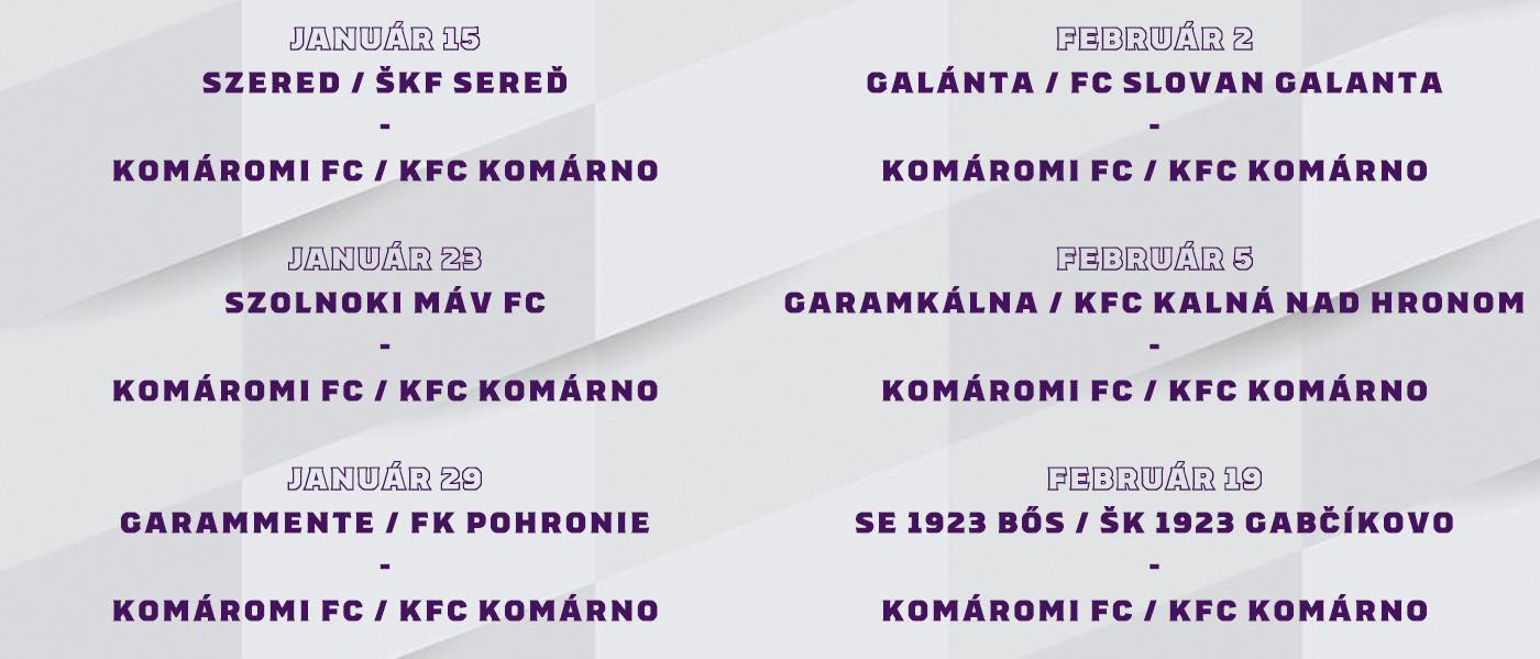 A koronavírusjárvány miatti megbetegedések kissé átalakították a komáromiak tervezett felkészülését így végül az Újpest és a Garamkálna elleni felkészülési mérkőzések elmaradtak, helyette azonban ellátogattak Vágsellyére és Ímely csapatával is összecsaptak a lilák.