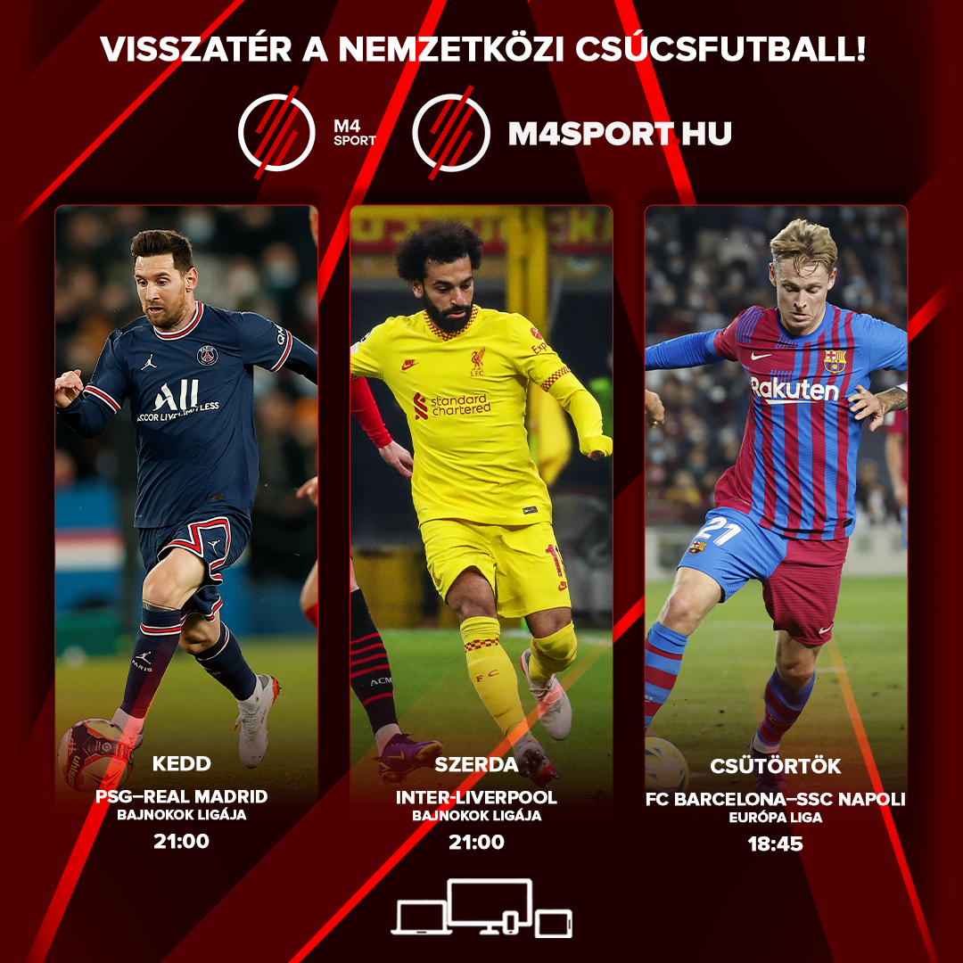 Kedden megkezdődik az egyenes kieséses szakasz a BL-ben, csütörtökön az EL-ben, így hétfőtől vasárnapig minden nap élő labdarúgó-közvetítésekkel várja a nézőket az ország legnézettebb sportcsatornája.