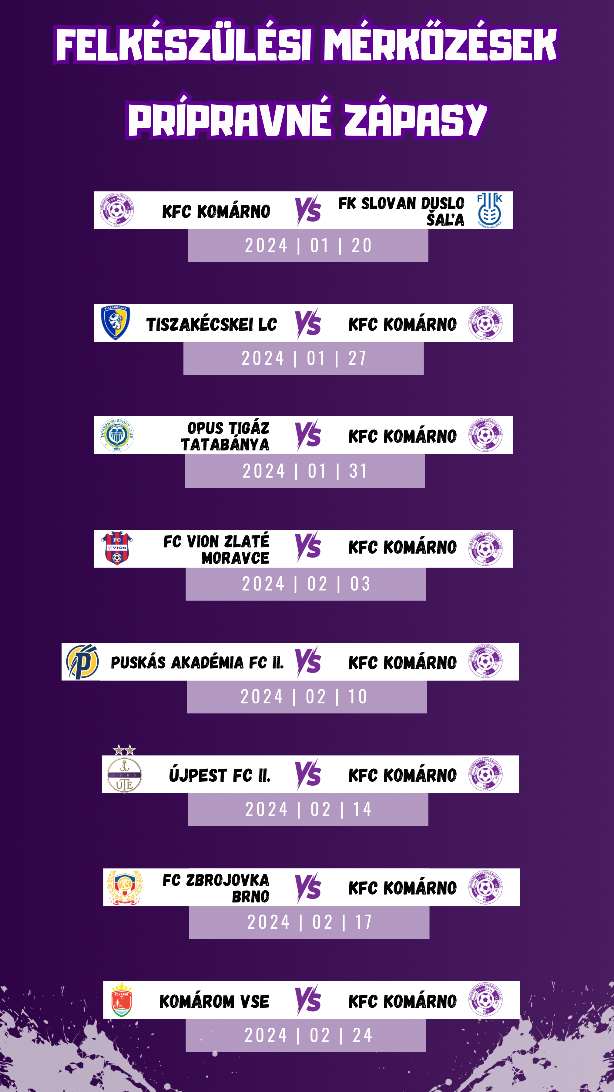 Ahogy azt az elmúlt években megszokhattuk, most is idegenben játsza legtöbb felkészülési mérkőzését a KFC. Csupán az első meccset rendezik „hazaiként”, mikor Vágsellye csapatát fogadják Dél-Komáromban.