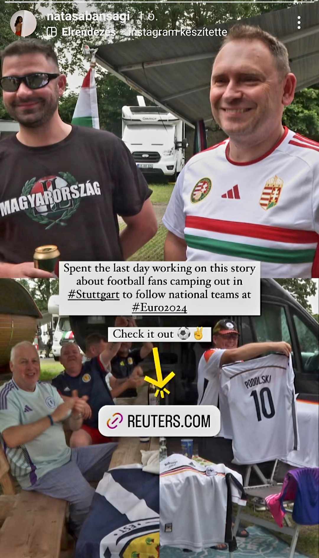 A stuttgarti futballstadion közvetlen közelében található népszerű autókempingnél eltűntek a nemzetközi rivalizálások. Lakóautóikban egymás mellett élnek az Eb ideje alatt a különböző nemzetek szurkolói a 2024-es Európa-bajnokság idején. Osztoznak örömben és a csalódásban is – írja a Reuters cikkében, amelyben külön foglalkozik a magyar szurkolótáborral is.