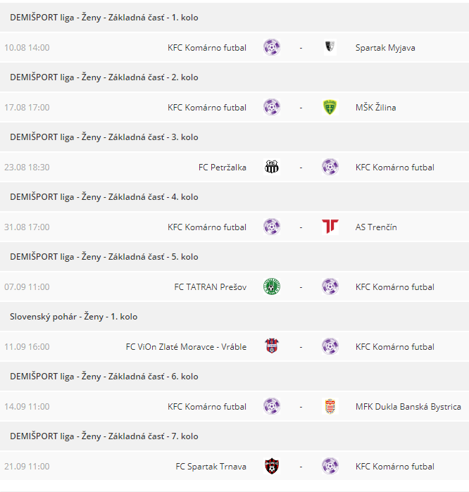 Szombaton (augusztus 10.) a Komáromi FC felnőtt női együttese is megkezdi az új idényt, ezúttal már a szlovák elsőosztályban, a DEMIŠPORT-ligában. Ellenfelük a Spartak Myjava csapata lesz. A találkozót 14 órától rendezik meg Ímelyen.