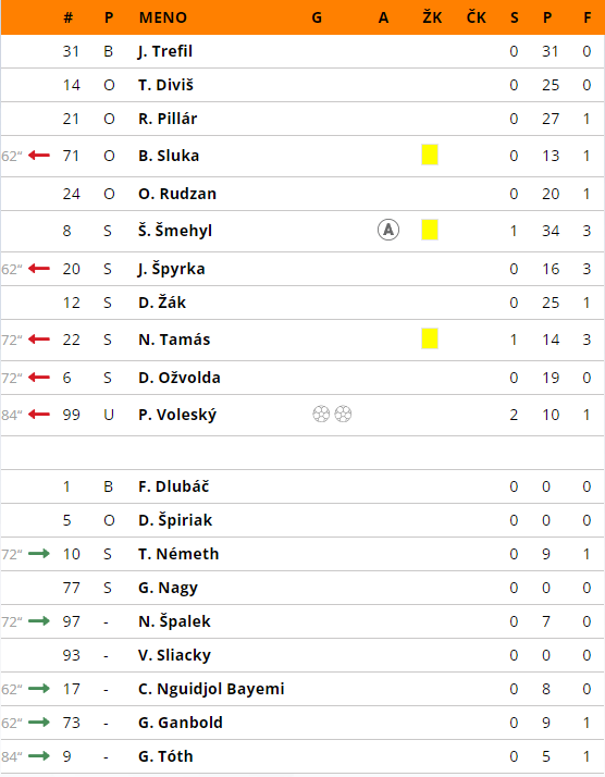 sárgalap: 45+2. Sluka (KFC), 52. Šmehyl (KFC), 71. Tamás (KFC) – 38. Katić (TRE), 53. Bariš (TRE), 87. Zorić (TRE). Játékvezetők: Choreň – Štofik, Juhos.