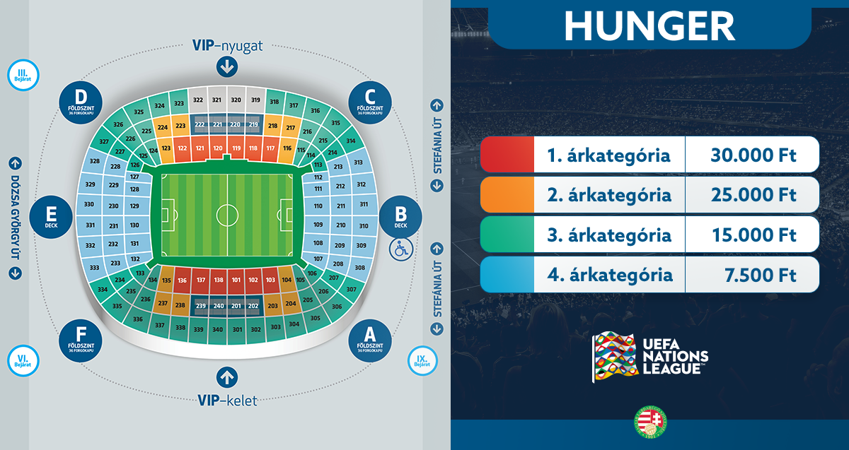 Az év elején és a nyár második felében közel 40 ezer szurkoló élt a magyar válogatott hazai mérkőzéseire meghirdetett bérletvásárlási lehetőséggel, a megmaradt jegyeket közvetlenül a Nemzetek Ligája-találkozók előtti időszakban lehet megvásárolni. A németek elleni hazai mérkőzésre október 25-én, pénteken 10 órától indul a jegyértékesítés a meccsjegy.mlsz.hu oldalon négy árkategóriában.