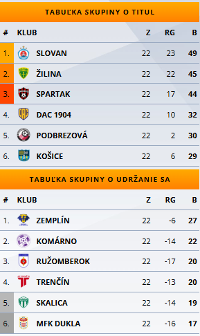 A „sosonok” győzelemmel zárták az alapszakaszt Besztercebányán, és a rájátszást hazai pályán kezdik a Zólyombrézó ellen. A „vasgyáriakkal” eddig mindkét mérkőzésük döntetlennel végződött (2:2 és 0:0). „A Zólyombrézó kellemetlen ellenfél, megvan a saját rendszere, amelyen most kissé változtattak, főként a védekezésen dolgoztak. Az eredményeik is ezt tükrözik, hiszen bekerültek a felsőházi rájátszásba” – mondta a Zsolna edzője, Michal Ščasný. Csapata négy ponttal van lemaradva az éllovas Slovantól, miközben a Spartak csak egy ponttal van mögöttük.