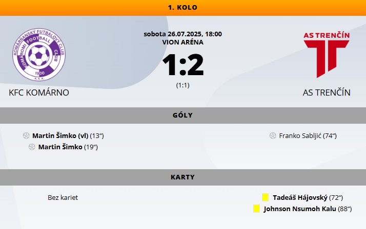 Címkék: AS Trenčín győzelem kfc komárno Komárom labdarúgás niké liga nyitóforduló öngól Sabljič szlovák bajnokság