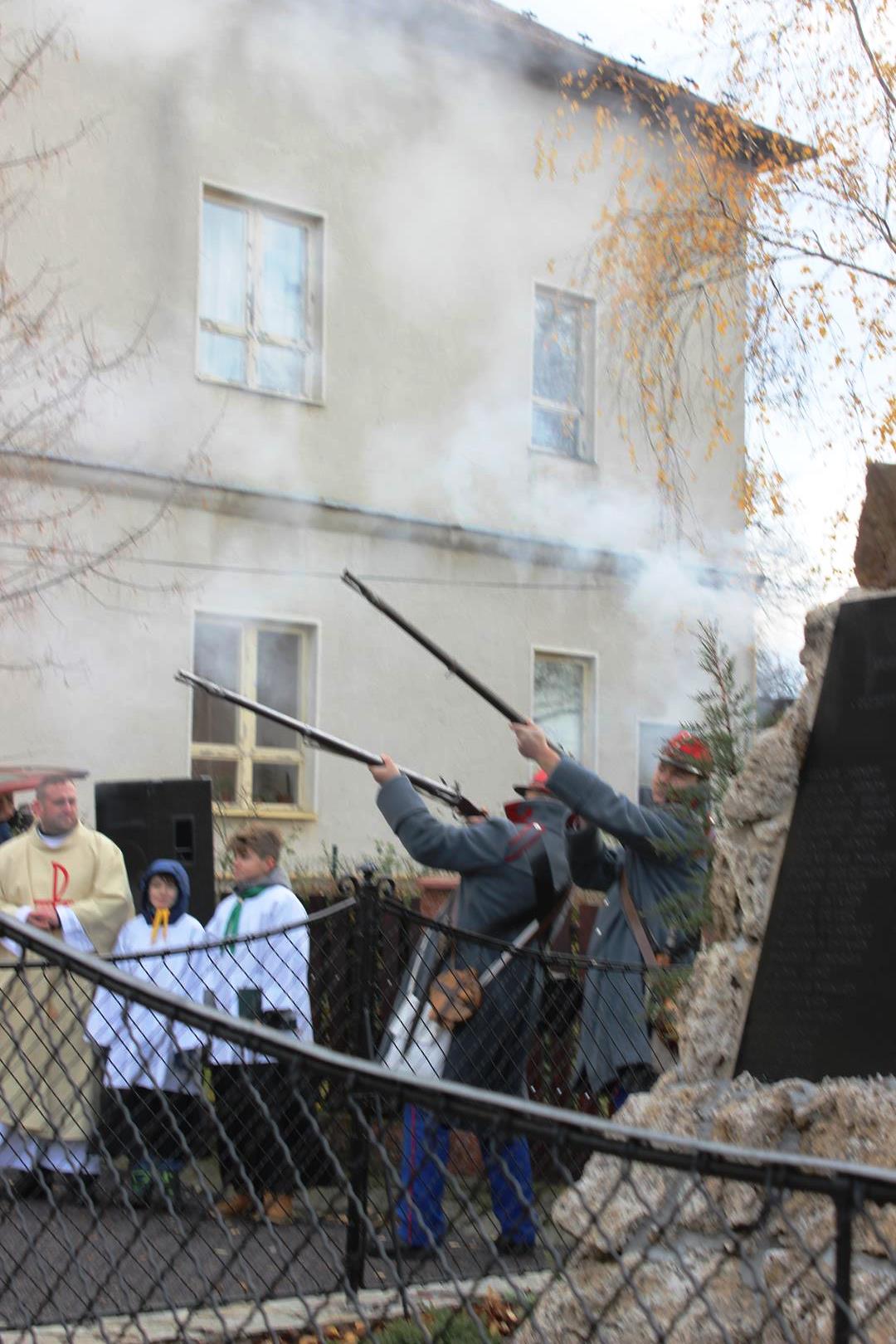 A szentmise után az ünneplők a templom melletti emlékhelyen a helyi cserkészek és hagyományőrzők díszőrsége mellett rótták le kegyeletüket a hősök előtt.