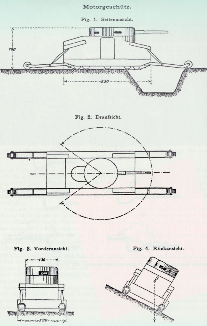 Az első világháború páncélozott harcjármű arzenáljának mind technikailag, mind vizuálisan homlokegyenest ellentmond az 1911-es osztrák-magyar „motorlöveg” névre hallgató tervezet, amely megjelenésében és tulajdonságaiban is a megtévesztésig emlékeztet a mai modern harckocsikra. Tervezője, Günther Burstyn, a mozgékonyságot megfelelő páncélzattal és egy forgatható lövegtoronnyal kombinálta, így hadrendbe állítása esetén a „motorlöveg” a világháború valamennyi páncélosát túlszárnyalta volna.