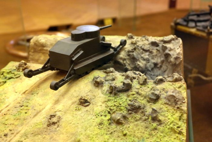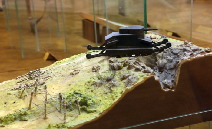 Nyitókép: A Burstyn-féle „motorlöveg” áttör egy ellenséges lövészárkon (modell/HGM – fotó: Orbán Gábor)