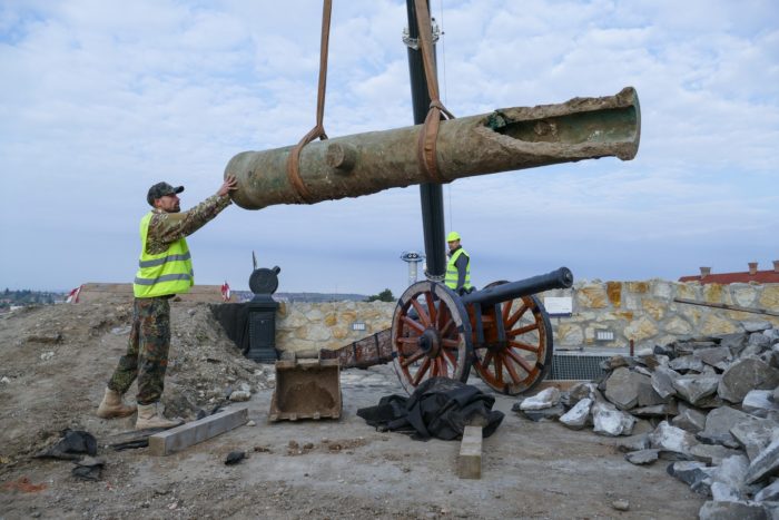 Közben csütörtökön kiemelték azt a bronzból öntött ostromágyút a délkeleti ágyúdombon, amelyet a helyreállításokhoz kapcsolódó régészeti kutatás során találtak. A több, mint 400 éves ágyú felfedezése azért igazi szenzáció, mert teljes ágyúcsövek ritkán és csak kivételes szerencsével őrződnek meg. Emellett ez az ágyú hírmondója a vár izgalmas történetének: feltehetően látta Eger tragikus elestét (1596), a török kiűzését (1687), majd Rákóczi fejedelem ünnepélyes egri bevonulását (1705).