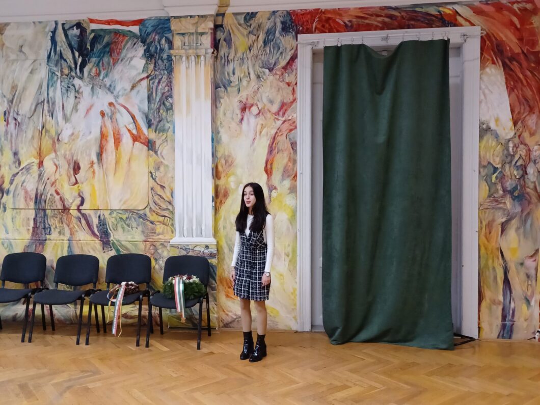 A rendezvény bevezetőjeként Ördögh Zsófia, a gimnázium második osztályos diáklányának előadásában Radnóti Miklós: Nem tudhatom című költeménye hangzott el. A tanulót Farkas Adrianna gimnáziumi tanár készítette föl.