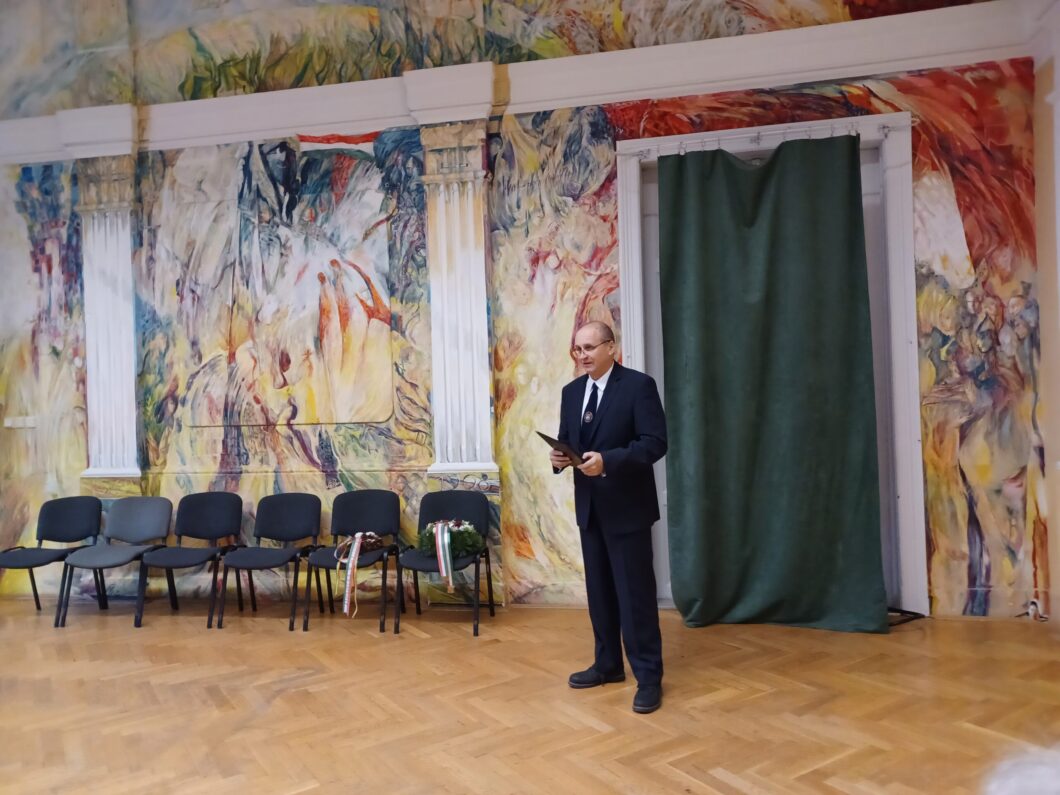Az elnök nyitó szavaiban utalt rá, hogy az ’56-os forradalom eseményei kapcsán a gimnázium díszterme valódi autentikus helynek tekinthető, amely szorosan kapcsolódik a forradalomhoz, hiszen az egykori diákok és tanárok hősies magatartást tanúsítva megtagadták a magyar forradalom elítélését. Tarics Péter az események felidézésére Andruskó Imrét, a Selye János Gimnázium igazgatóját kérte fel.