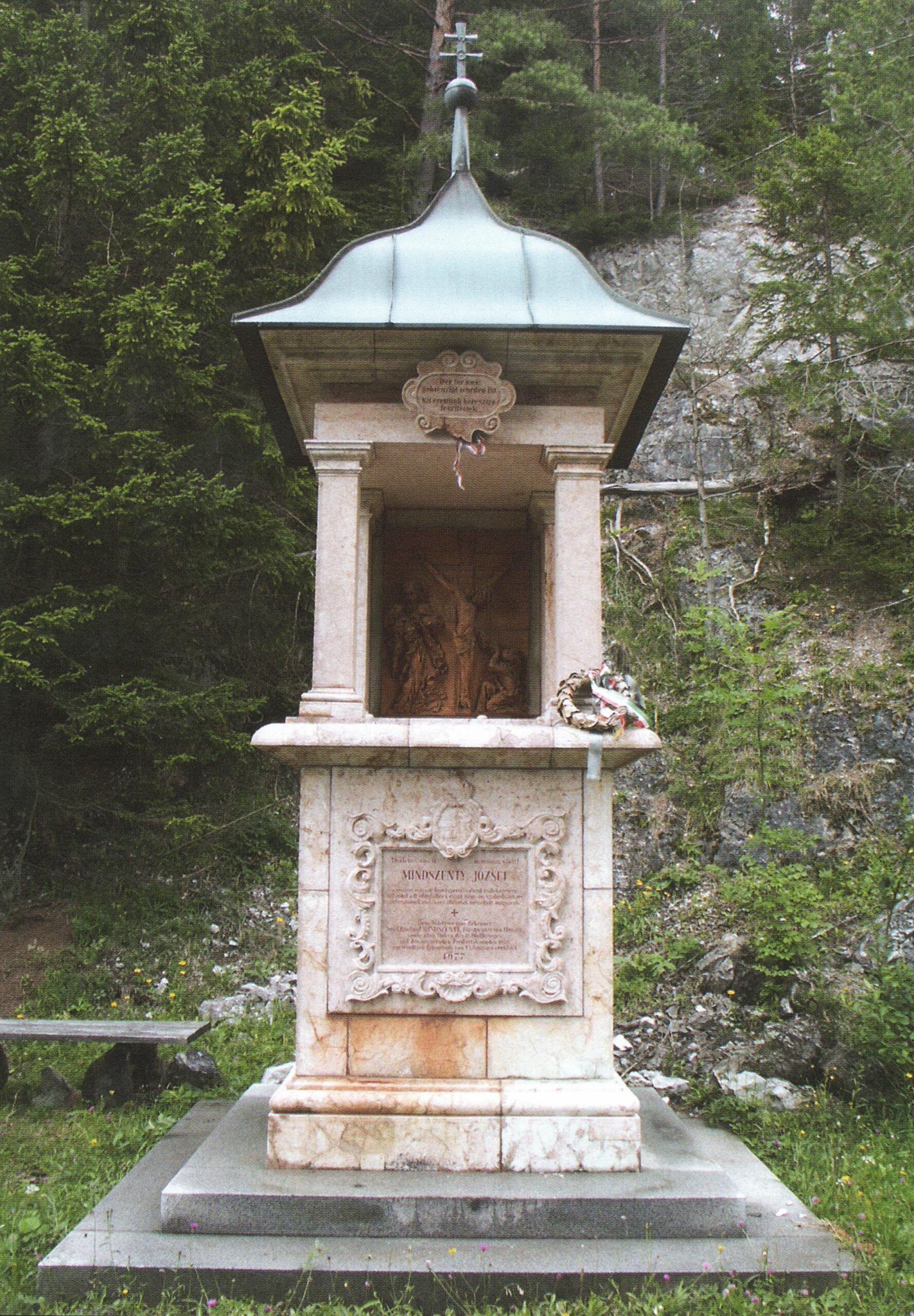 A mariazelli keresztút eredetileg a bécsi országút mentén volt, és Domenico Sciassia tervei alapján 1647-től 1955-ig készült. A salzburgi rózsaszínű márványból épült kápolnácska szürke gránit-talapzaton áll, toronysisakját vörösréz-lemezek fedik. A három oldalon nyitott „szentélyt” elől két négyszögű oszlop tartja.