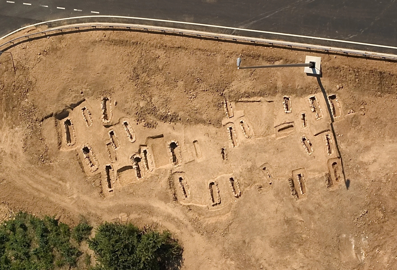 A horvátországi Velim temetője. Aerial view of the Velim burial site in Croatia.