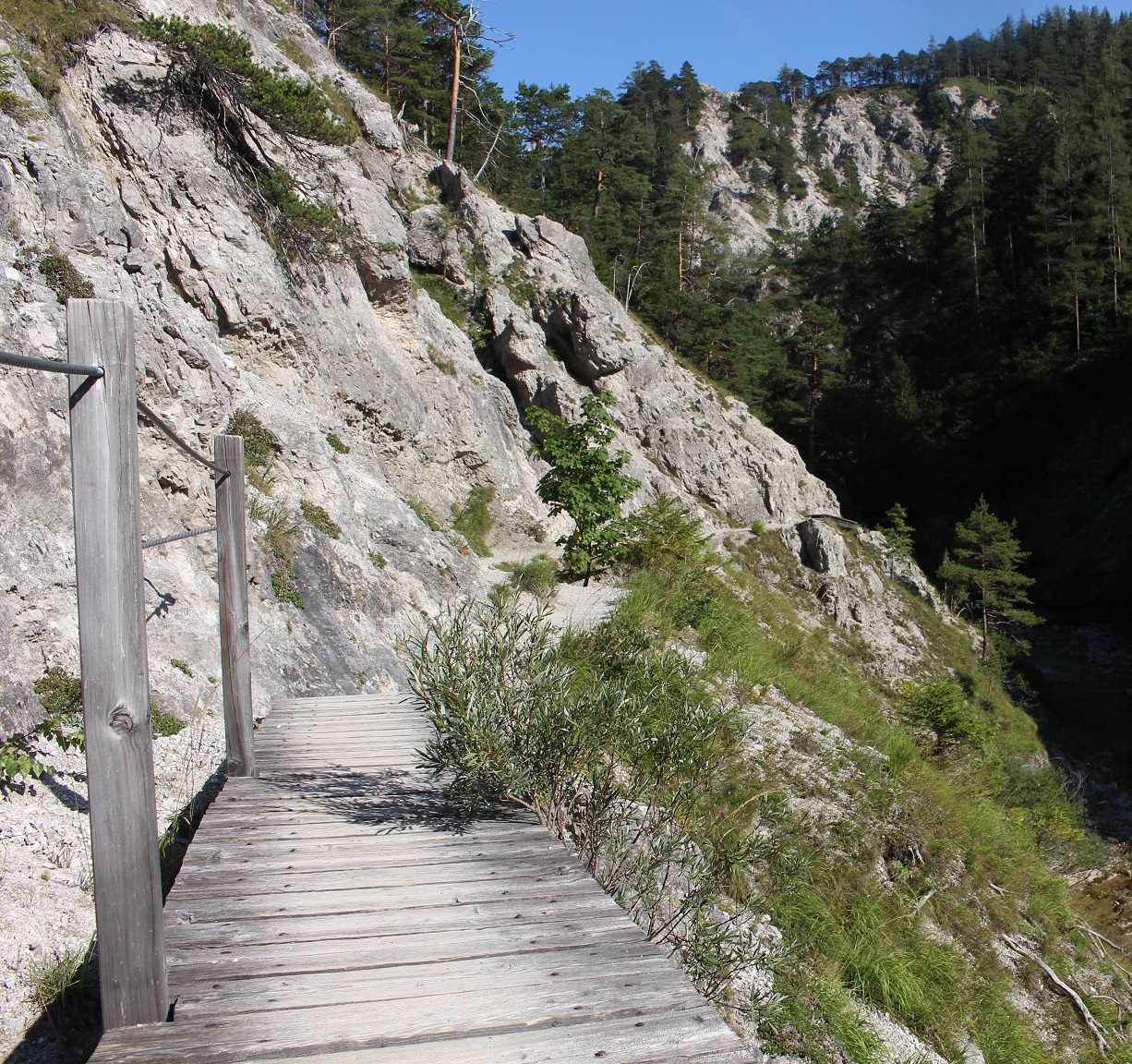 Az Ötschergräben Ausztria egyik legszebb szurdokvölgye. Az ember végig egy tökéletes Windows-képernyővédőben érzi magát, annyira hihetetlenül élénk a színe mindennek: a völgy mélyén futó patakok kritálytiszták, a zöld és a kék összes árnyalatába pompáznak, amihez remekül passzol a nyári természet élénkzöldje és a sziklák világosszürkéje.