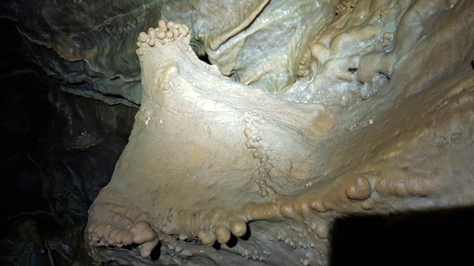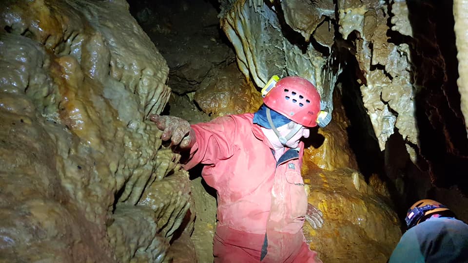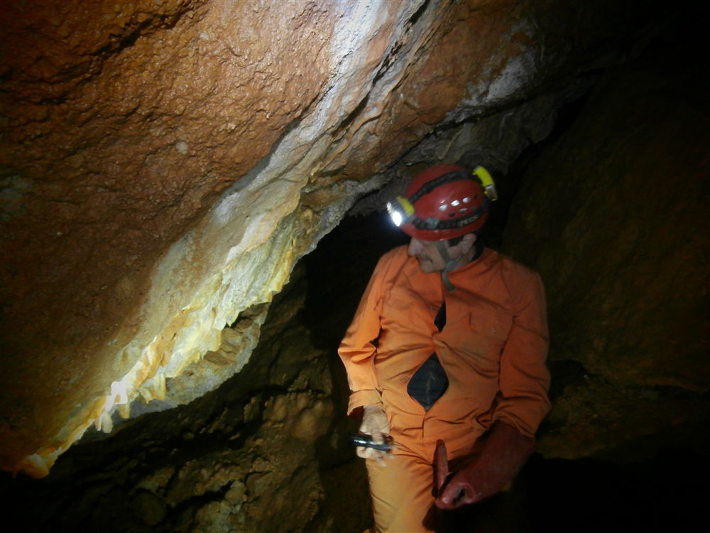 Beszélgetésünk során elmondta, hogy a keskeny hasadékot 2012-ben kezdték tisztítani. Kb. 7 méteres járat alján vált láthatóvá egy nyílás, amely egy 9×9 m nagyságú karsztos, cseppkövekkel díszített terembe vezetett. Ezt az édesapjáról Radinger teremnek nevezte el.