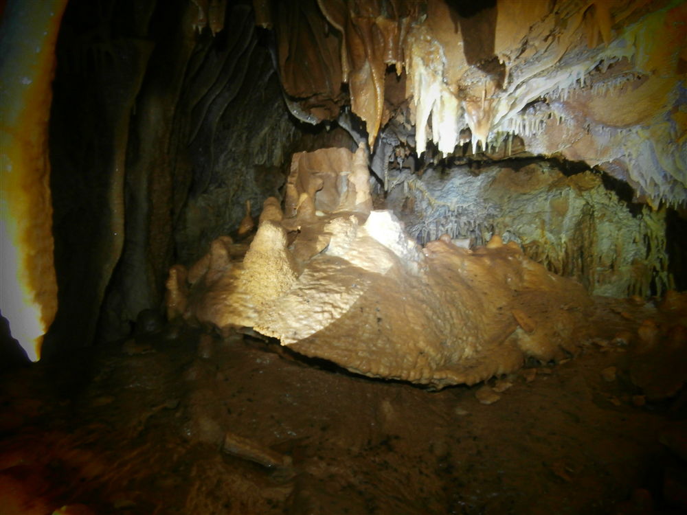 A teremnek nem volt folytatása, de onnan visszatérve az említett 7 m-es nyílás alján észrevett egy kb. 7 cm-es rést, mely mögött egy másik járatott sejtett. Igaza volt! Mint elmondta addig ástak, amíg be nem jutottak egy kb. 7 méteres szakadékba, melyet legyőzve egy közel 100 m hosszú cseppkövekkel díszített barlangba jutottak. Az egyik cseppkőcsoport a Divény vár makettjére emlékeztet, s erről is nevezték el. A barlangban sok töredezett cseppkövet találtak, melyek feltehetően a vár felrobbantásakor töredeztek le. Maga a folyamat azonban élő, a cseppkövek azóta is növekednek. A barlang a járás legnagyobb, de a nagyközönség által nem látogatható cseppkőbarlangja.