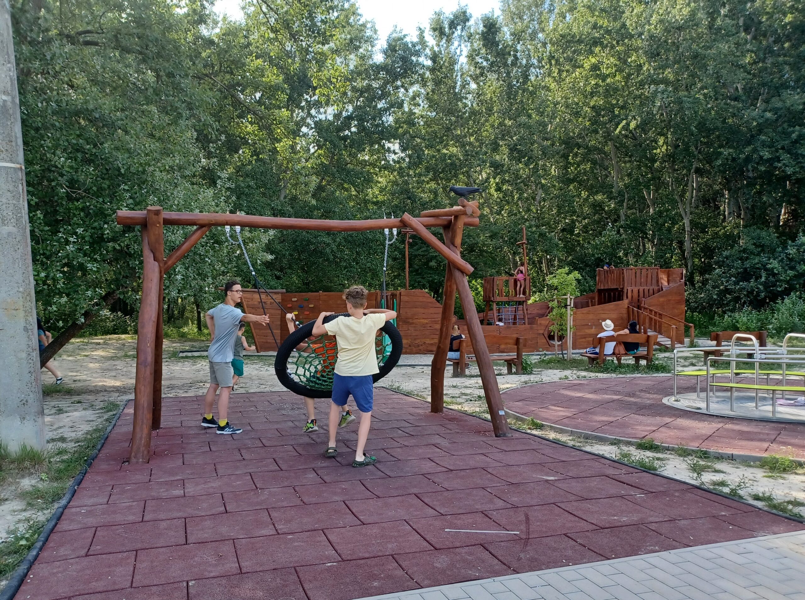 És ami a legfontosabb, a gyerekek nagyon szeretik: vidáman, önfeledten játszanak e kellemes vízparti környezetben; élvezik az új hintákat, mászókákat, csúszdákat, körhintát, homokozót.