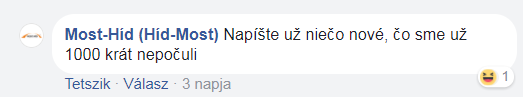 A stílus maga az ember, ez esetben a párt. Ahogy megtudtam, a Most-Híd stílusa mostanában az, hogy gúnyosan, lekezelően, elutasítóan válaszol a Facebook hozzászólásokra, sőt, mémeket használ reakcióként, ami már bőven az alpári stílus felső határait nyaldossa egy komoly, mainstream, sőt, kormánypárt részéről.