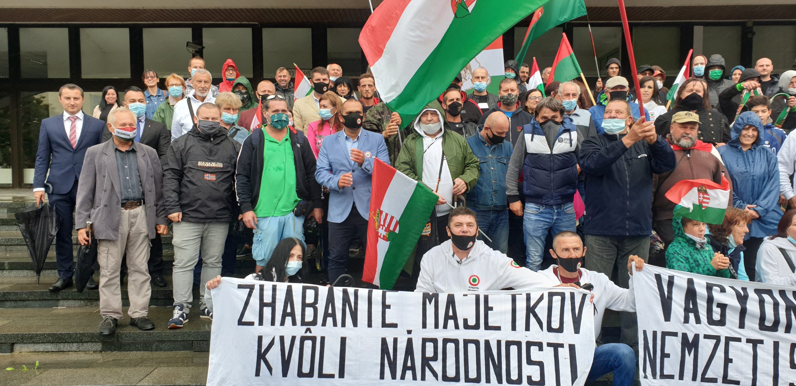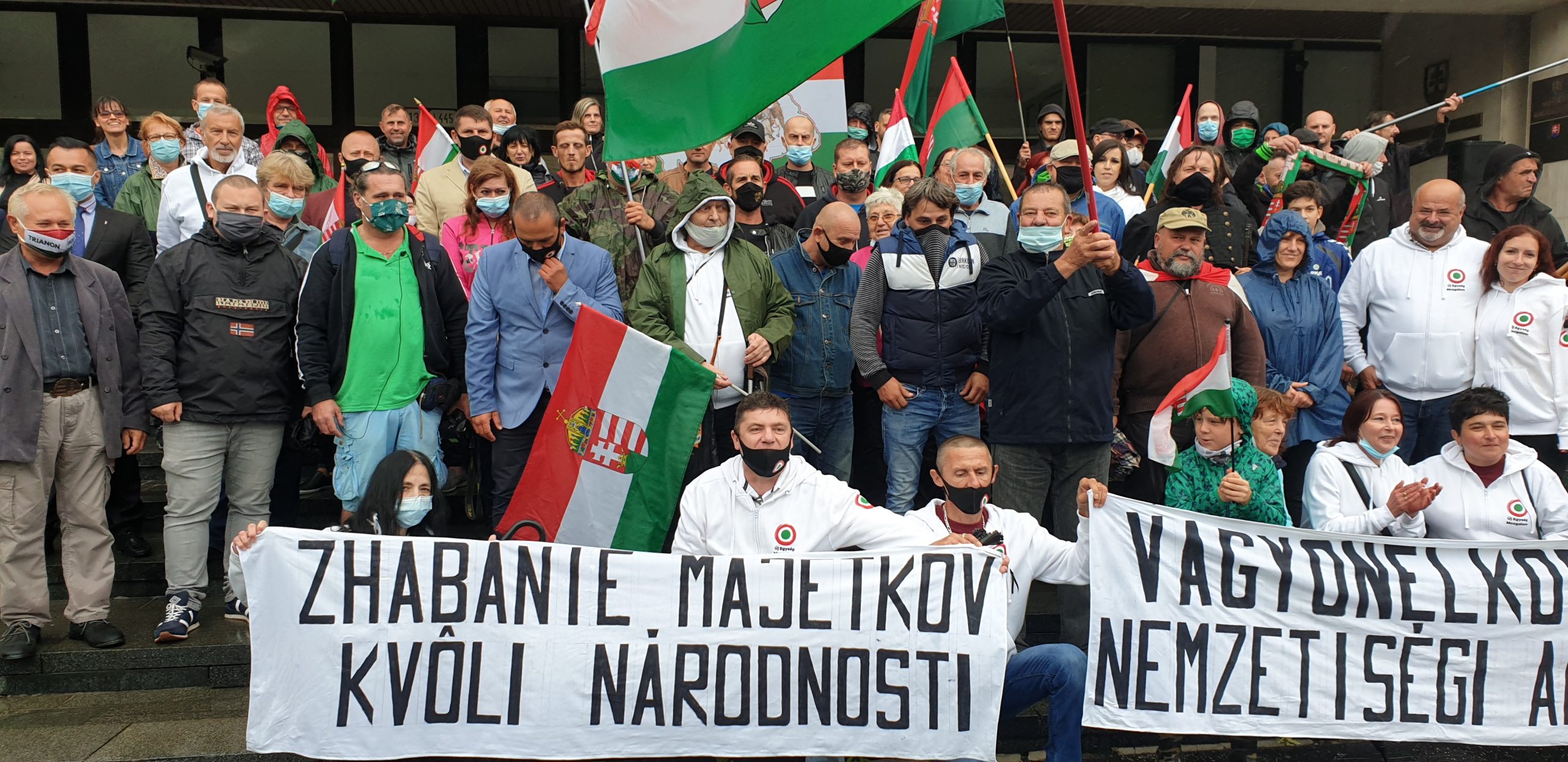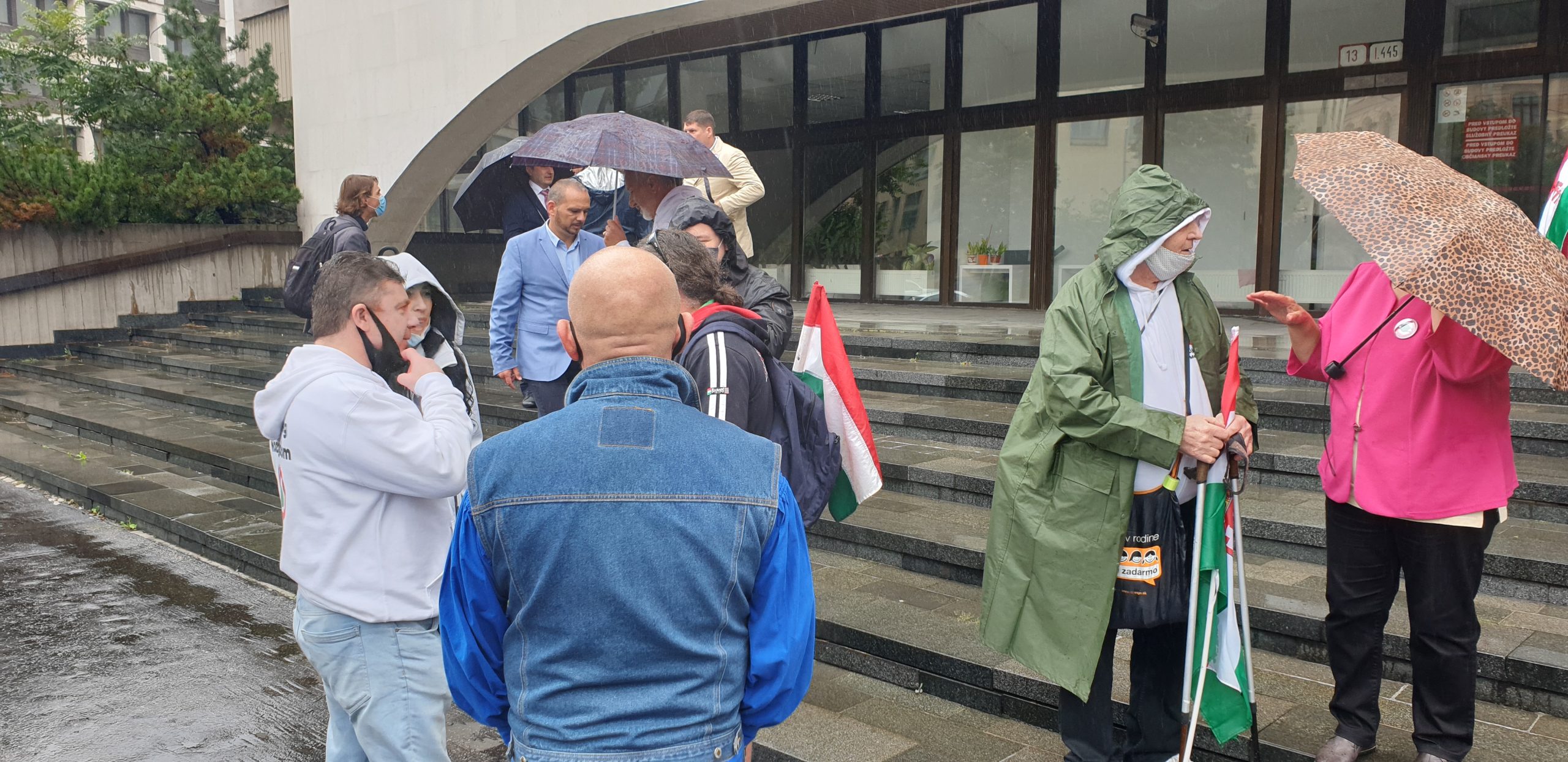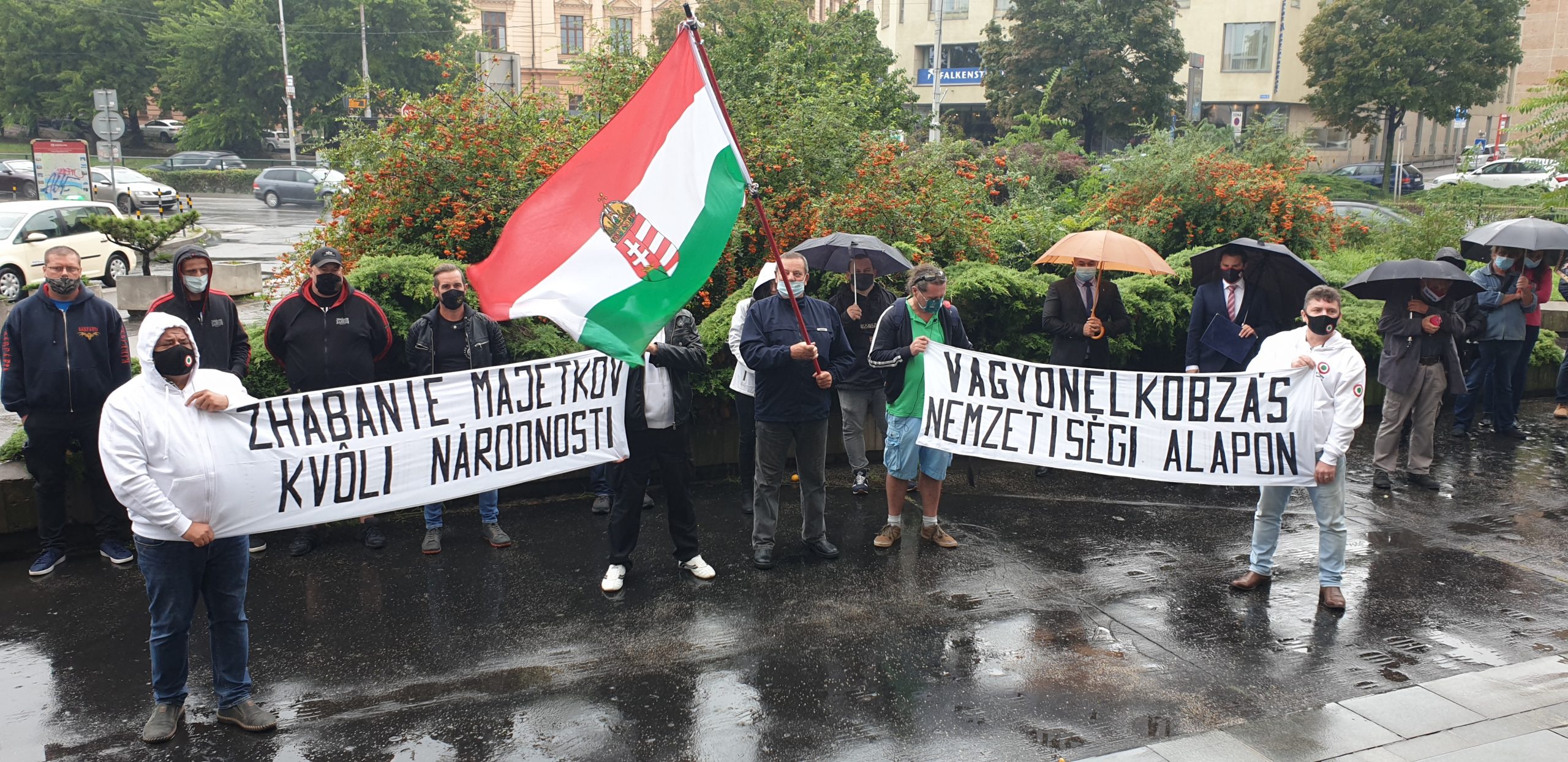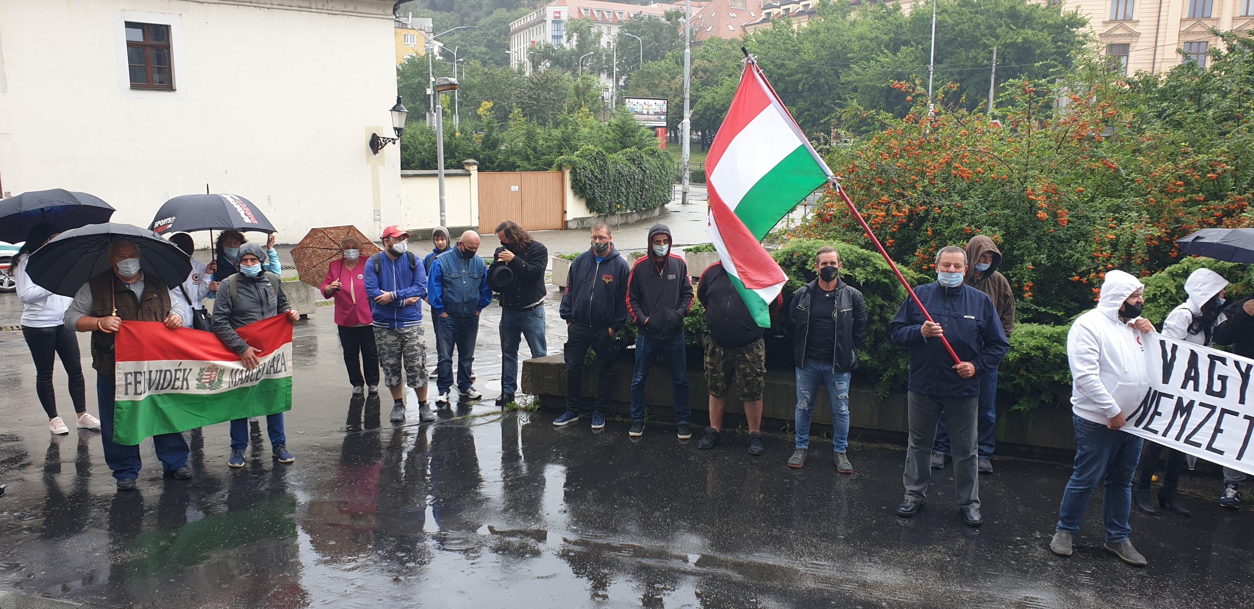 Koronavírus-járvány, határlezárás, zuhogó eső ellenére is 100-120 személy tartotta fontosnak Pozsonyban, hogy szeptember 1-jén, a szlovák alkotmány napján rámutasson a felvidéki magyarság legfőbb jogsértéseire.