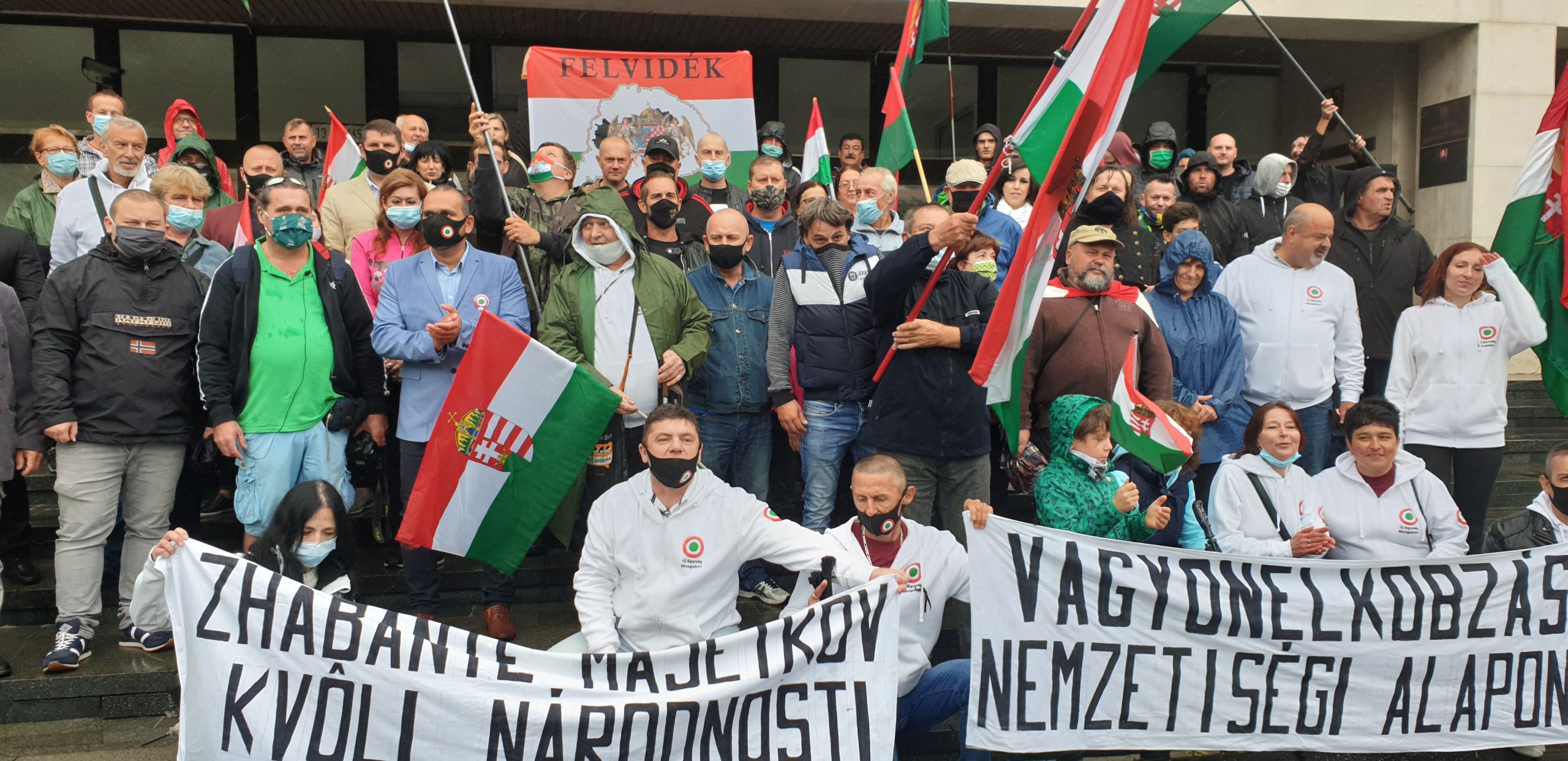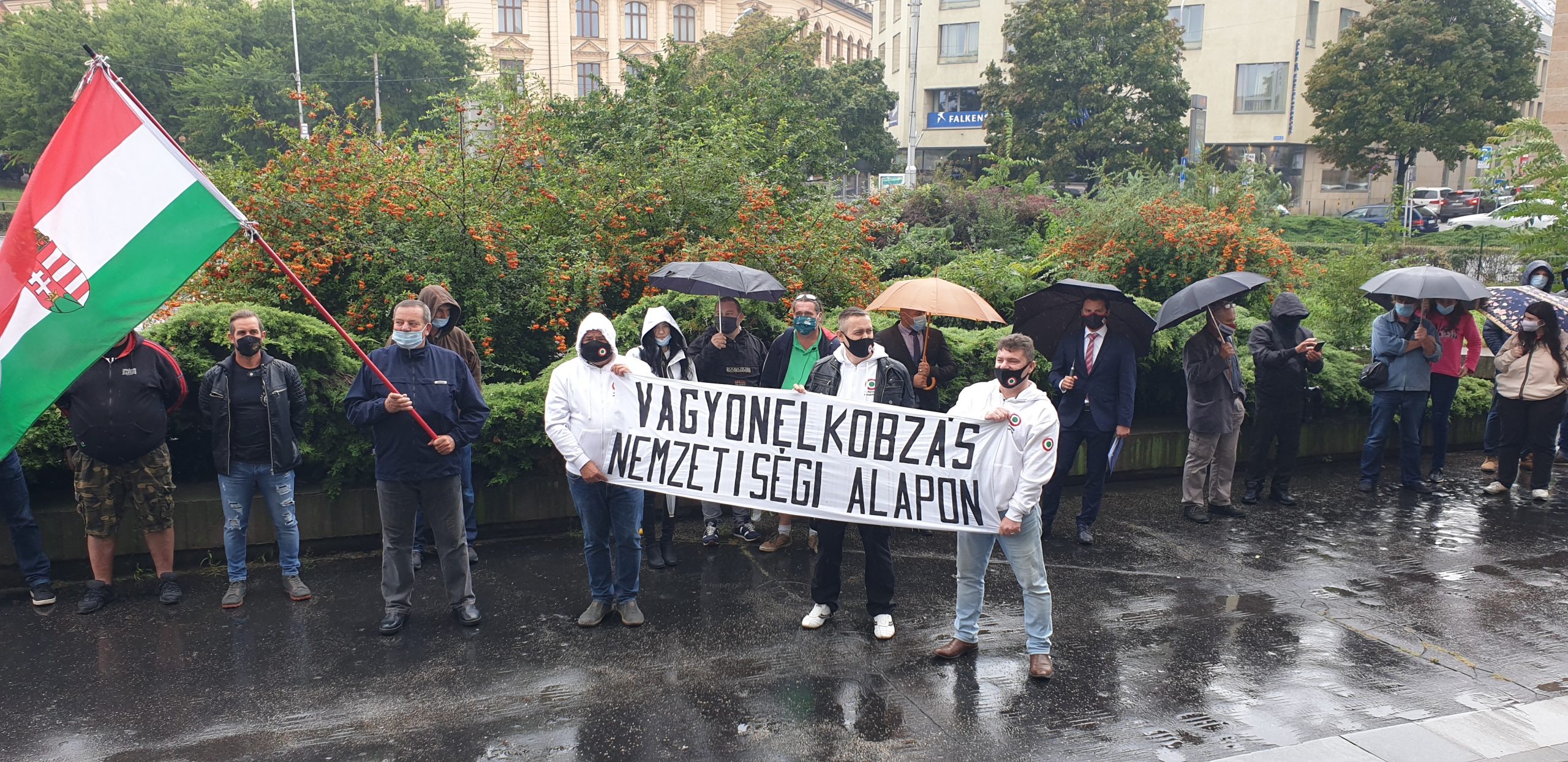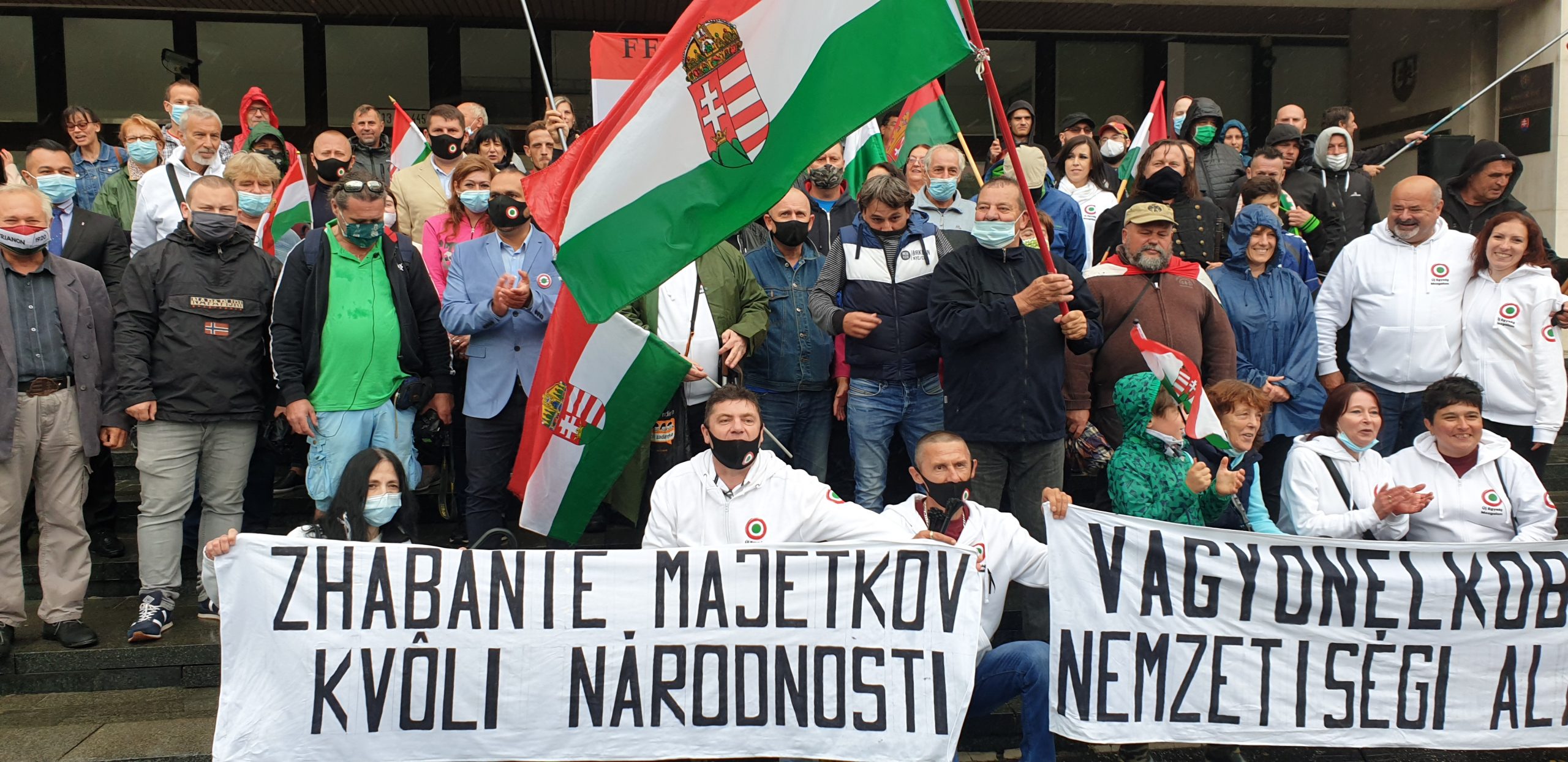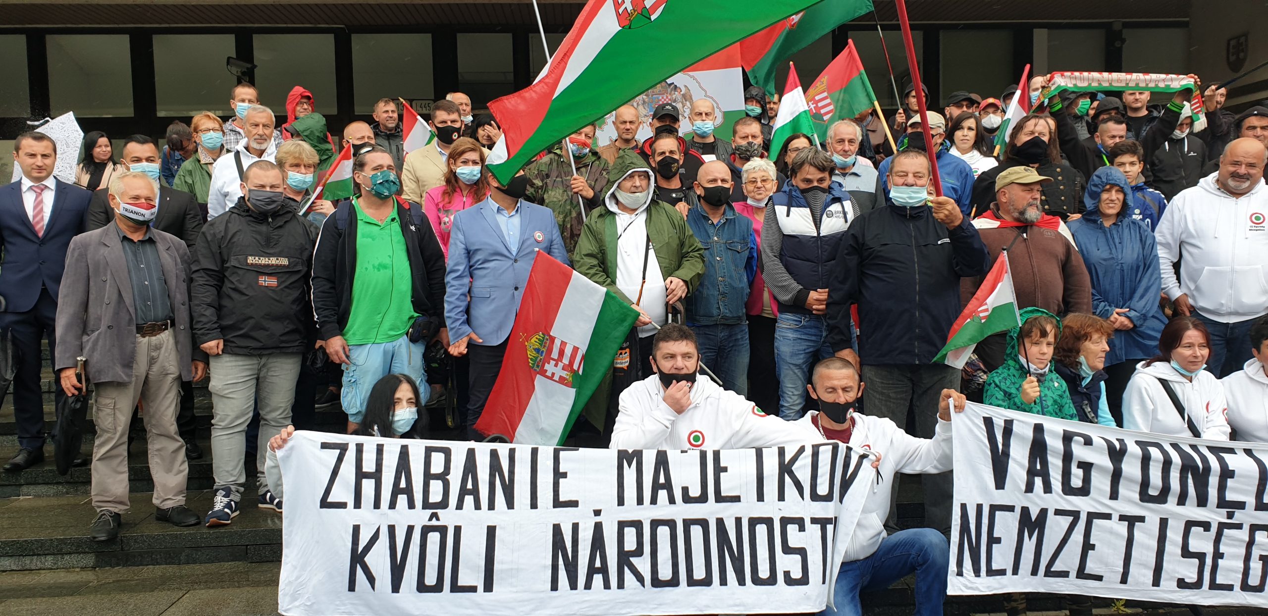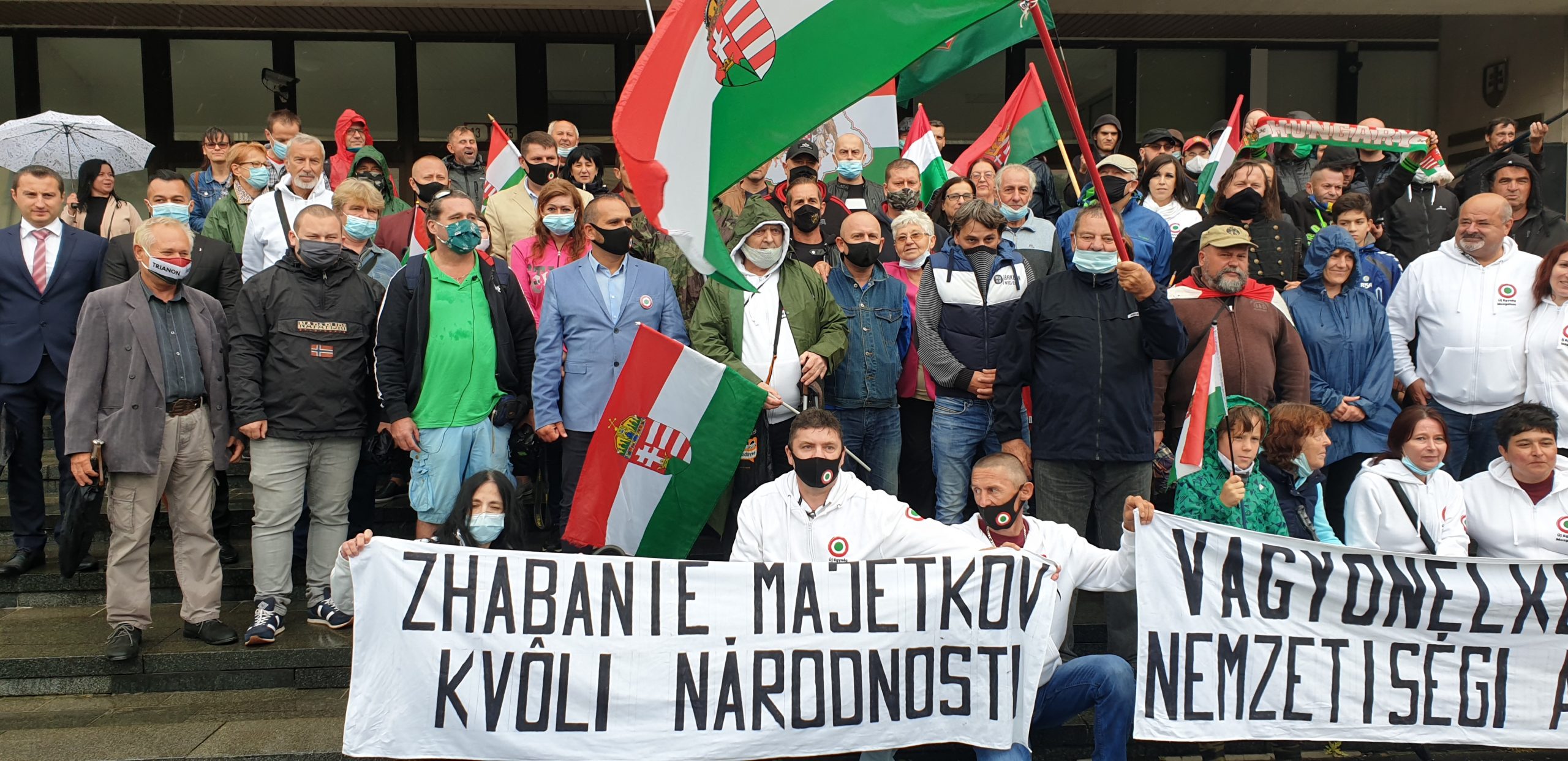 Koronavírus-járvány, határlezárás, zuhogó eső ellenére is 100-120 személy tartotta fontosnak Pozsonyban, hogy szeptember 1-jén, a szlovák alkotmány napján rámutasson a felvidéki magyarság legfőbb jogsértéseire.