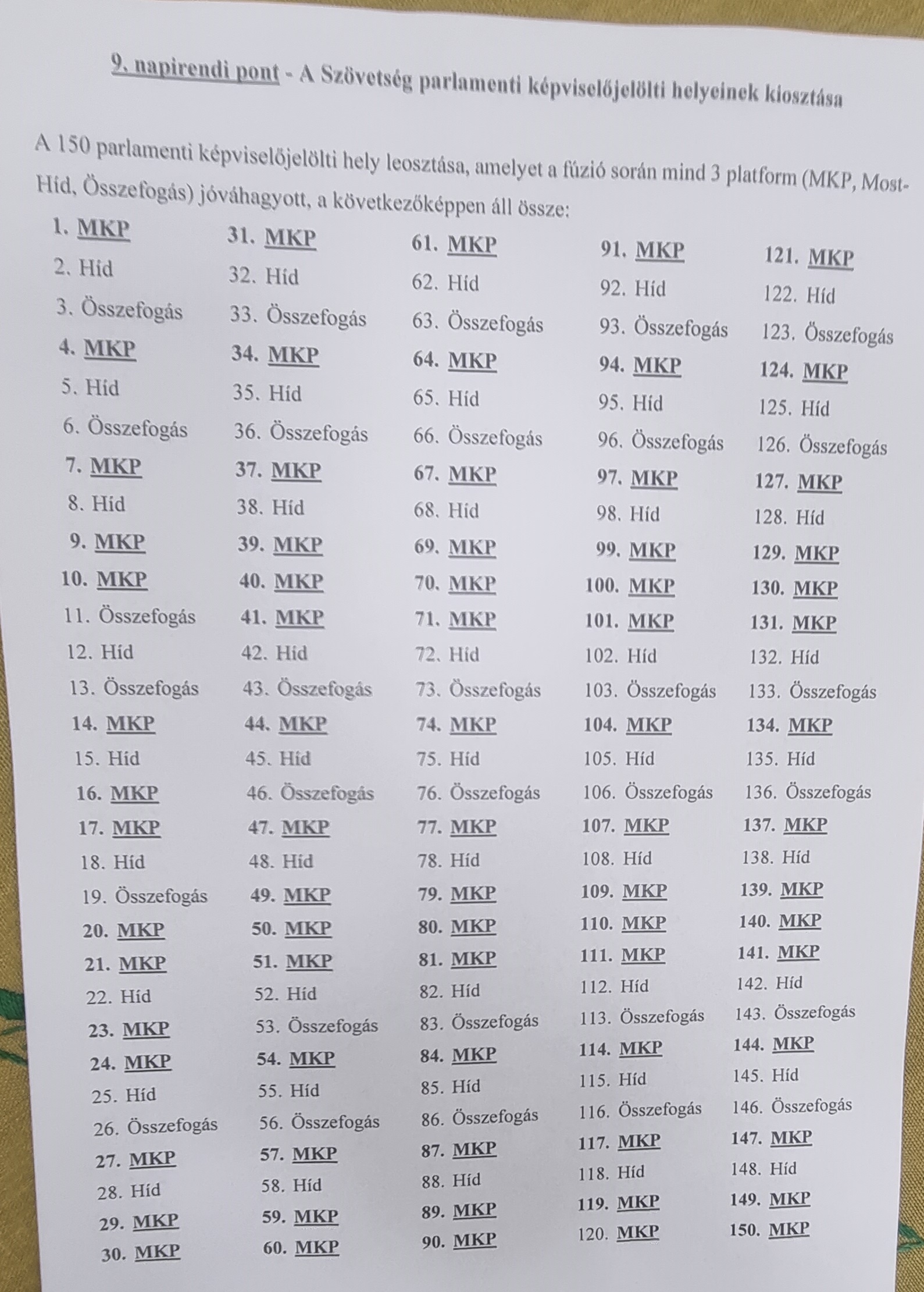 A Körkép megszerezte a Szövetség-Aliancia választási listáját az egyes platformoknak szánt helyek szerint. Ebből az derül ki, hogy a Most-Híd az első tízben abszolút felülprezentálva a valódi súlyukat, 3 helyet kapott.