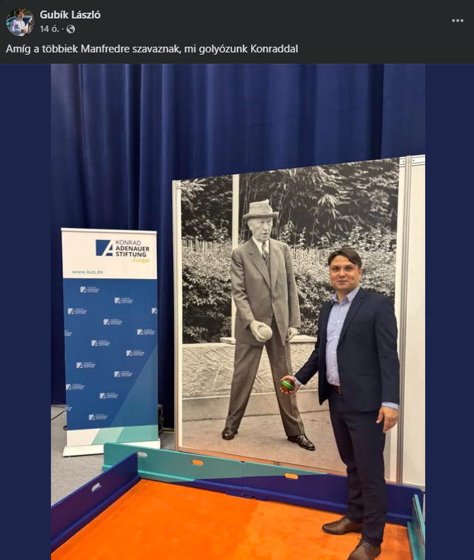 Az nem derül ki a Facebook-posztokból, hogy mit jelent a „nem szavazta meg”, ám gyanítom, hogy Gubíkék nemes egyszerűséggel nem voltak jelen a szavazásnál, hogy ne kelljen sem igent, sem nemet mondaniuk. Mit tett Gubík a szavazás közben? Lőtt egy szelfit Konrad Adenauer fotójával, ahogy „golyóznak”. Az ilyesféle lezserség elnézhető egy turistának – de nem egy magát felelős politikusnak tartó személynek.